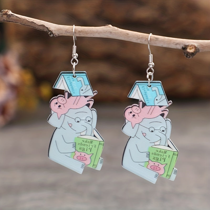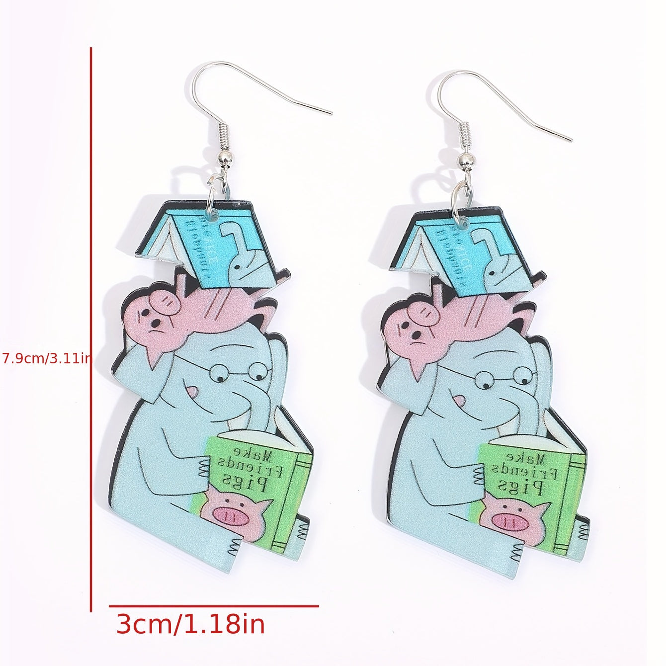 These colorful acrylic dangle earrings feature cute cat, dog, and elephant designs, making them an adorable gift for women and girls.