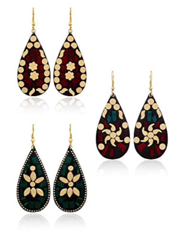 This combo set includes three pairs of stunning Afghani Tibetan earrings, perfect for adding a touch of bohemian style to any outfit.
