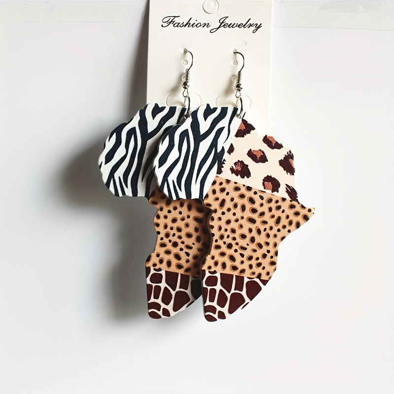 These creative Africa map dangle earrings are perfect for daily casual wear or as a thoughtful gift. Made with resin, they showcase a unique and stylish design.