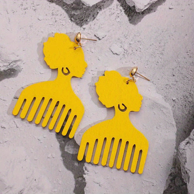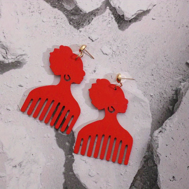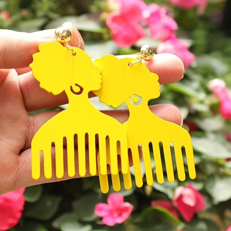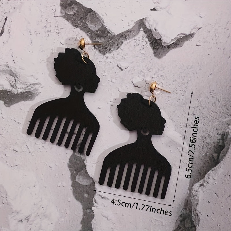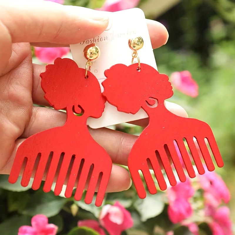 These exaggerated earrings are a unique and creative gift for women and girls. They feature a retro bohemian style with African head comb dangles.