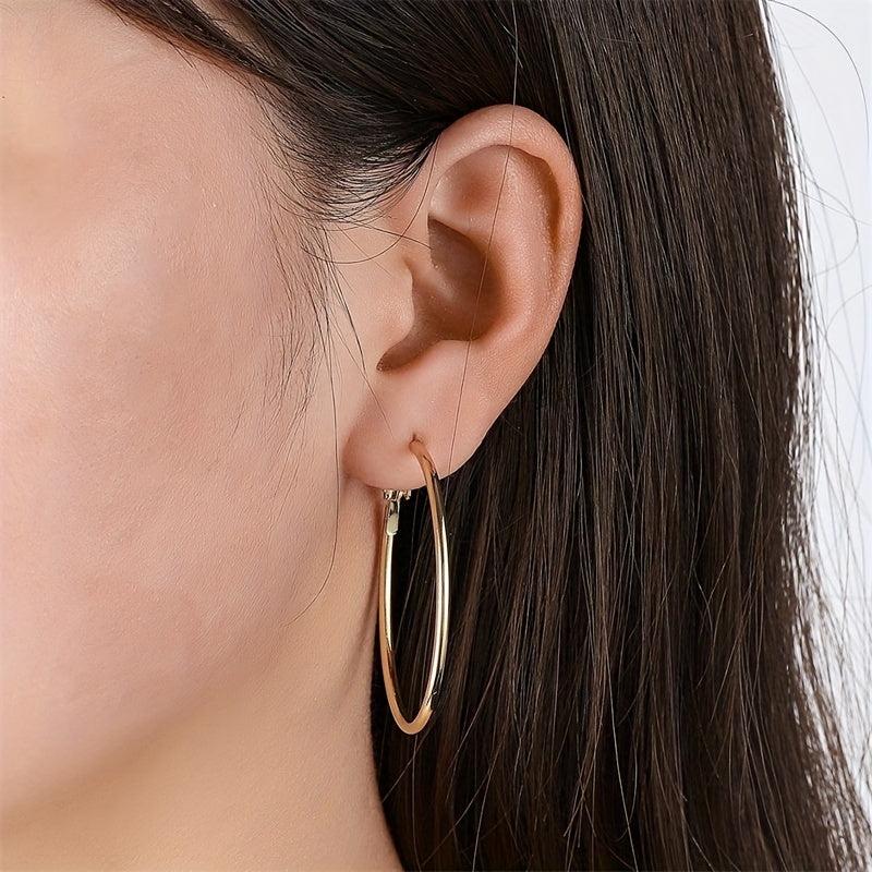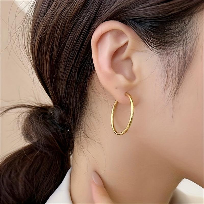 Add a touch of glamour to your everyday look with these stylish hoop earrings. Made with high-quality alloy and 18K gold plating, these earrings are perfect for daily wear or as a gift for a special occasion.