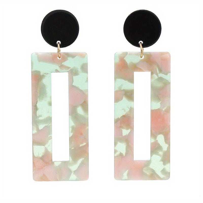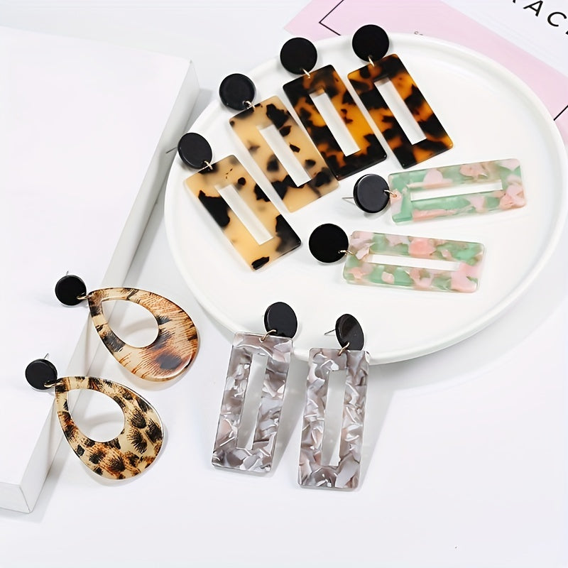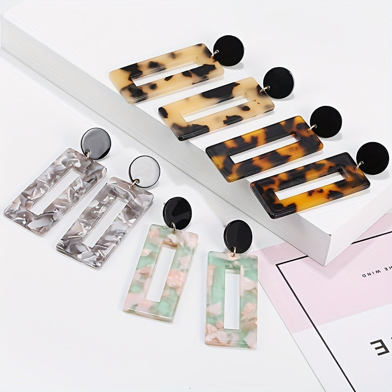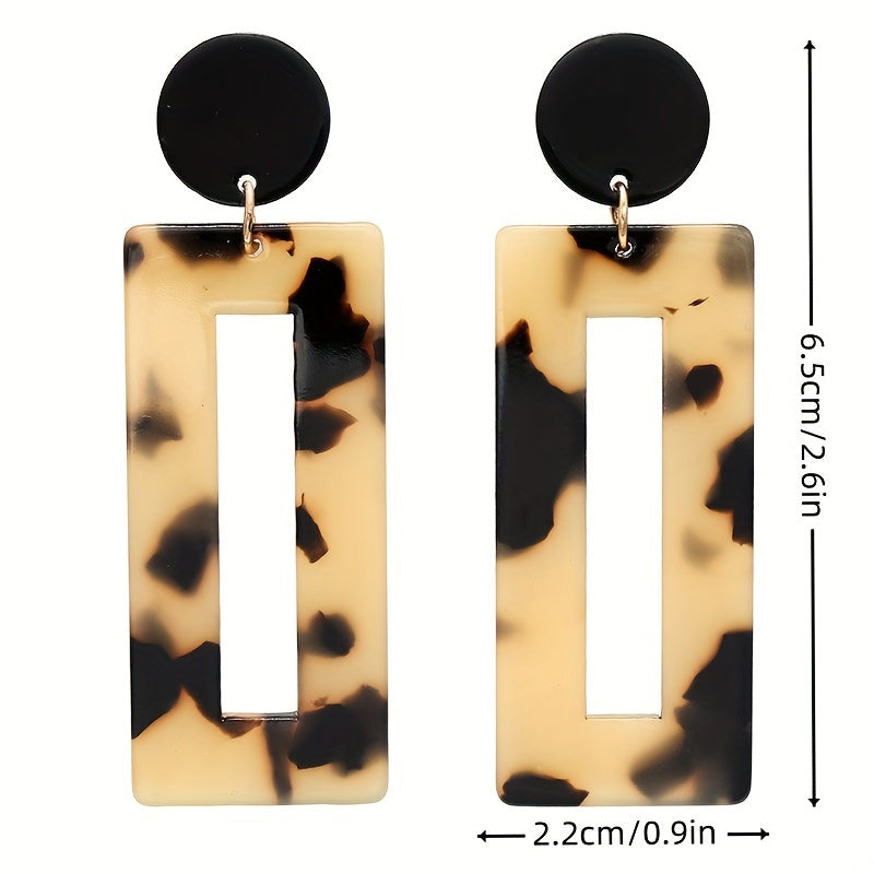 These amber acrylic dangle earrings are perfect for daily wear. Their lightweight design and geometric shape make them a stylish accessory for any outfit.