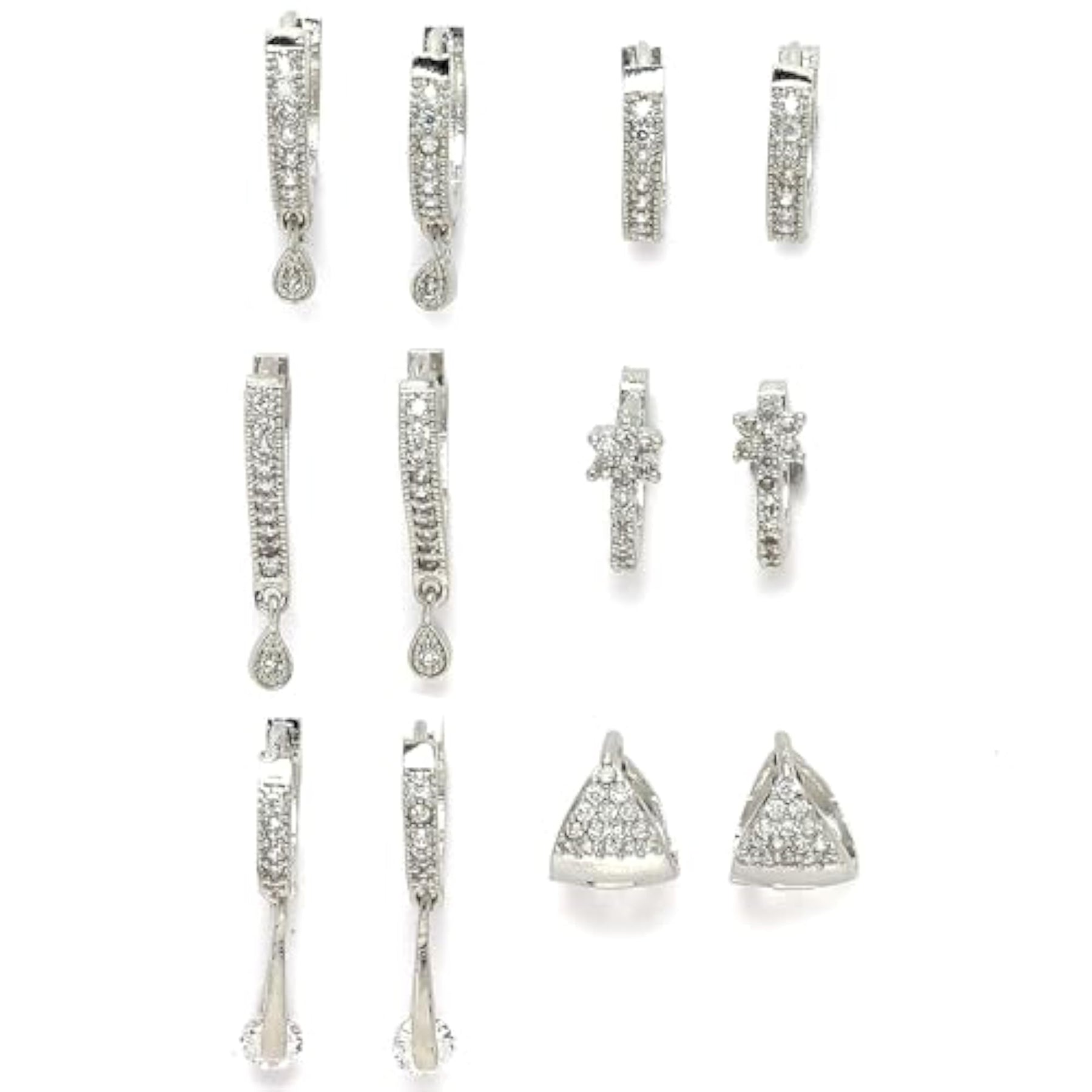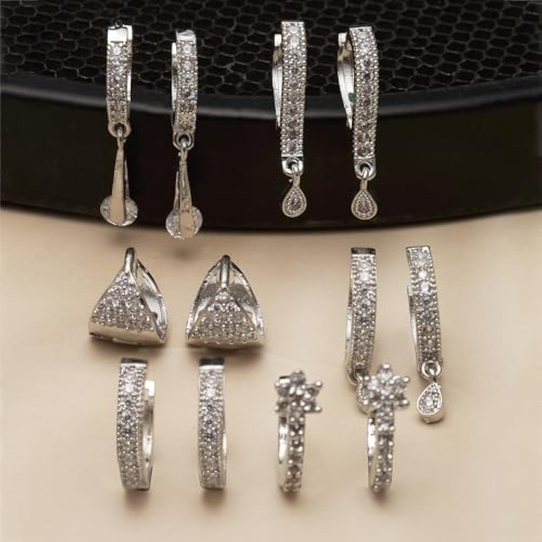 This combo set includes 8 pairs of elegant American diamond earrings plated with high-quality metal. Perfect for everyday wear or special occasions.