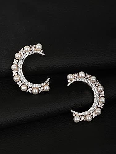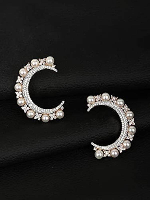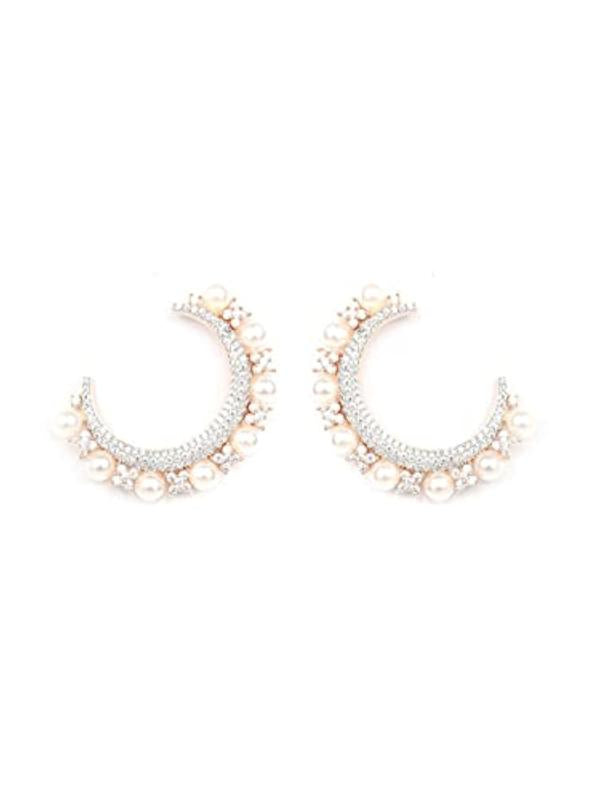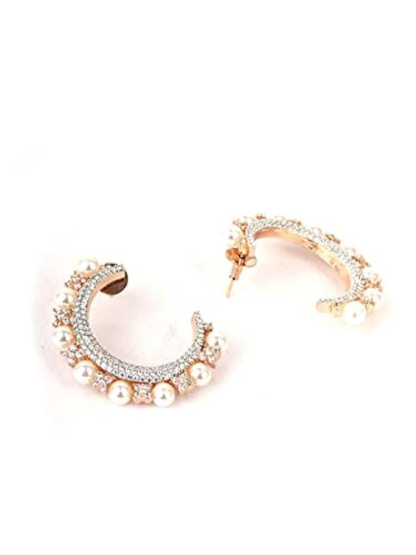 Classic and elegant half hoop earrings with sparkling American diamond beads.