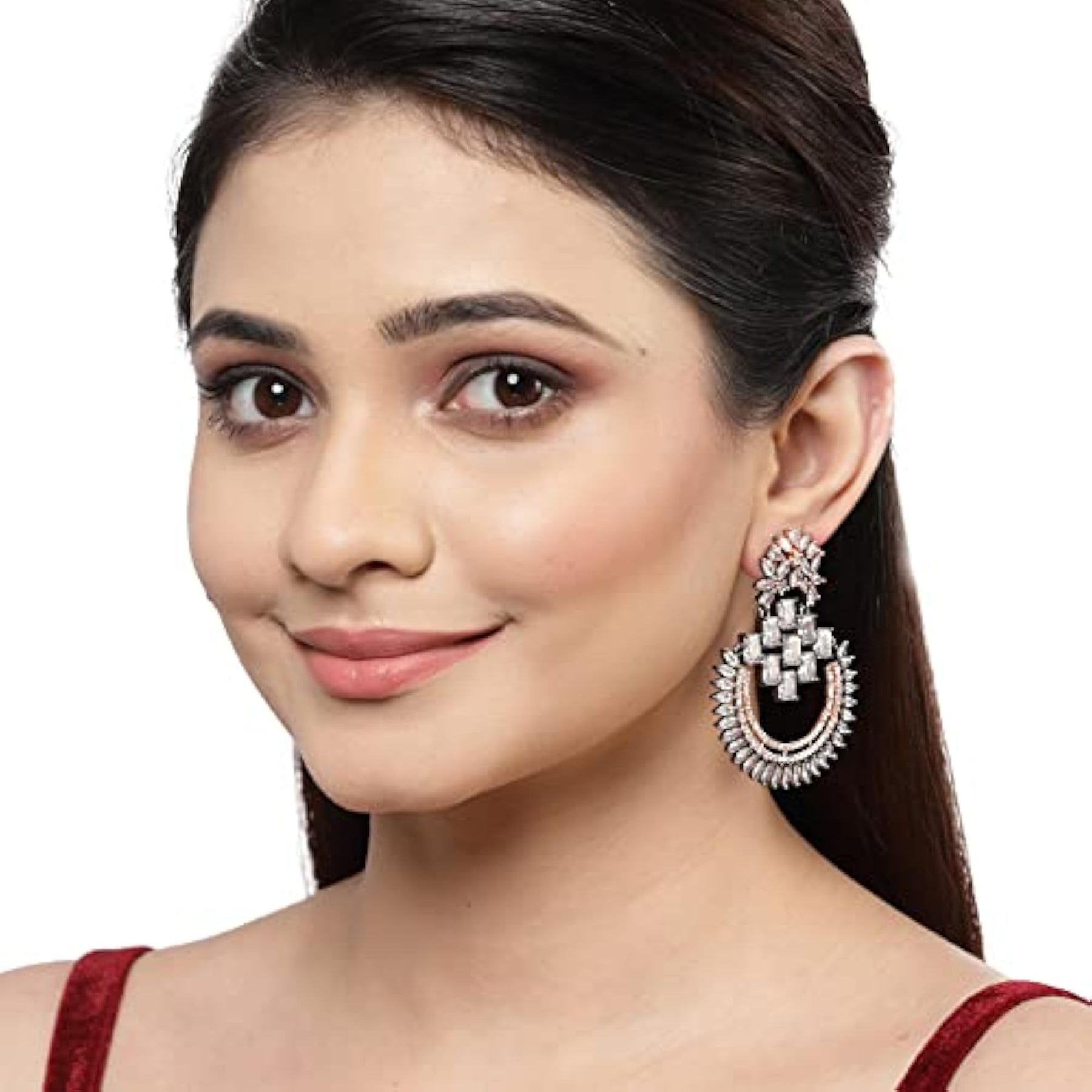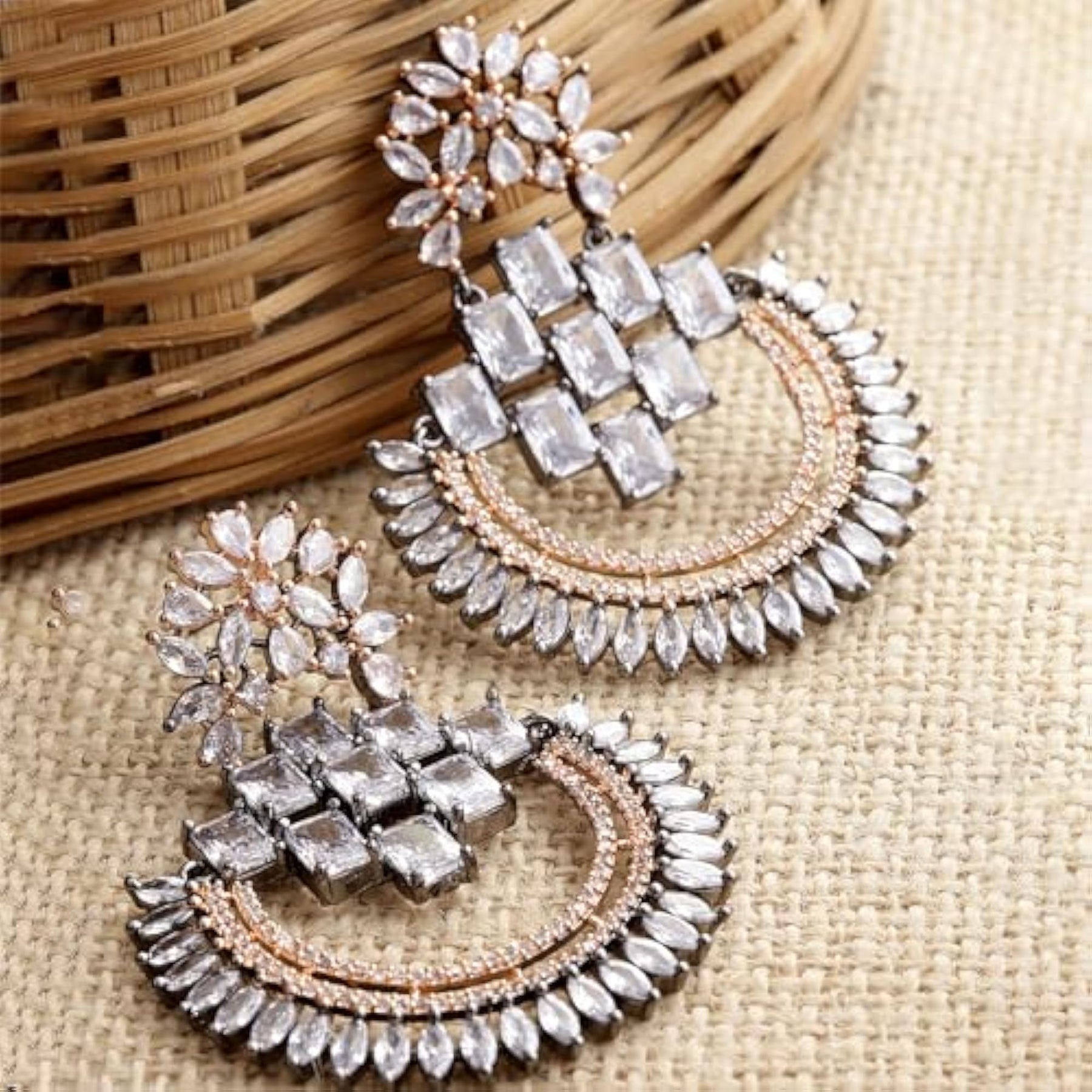 Add a touch of elegance to your outfit with these stunning chandbalis earrings featuring American diamond studs. Perfect for special occasions or daily wear.