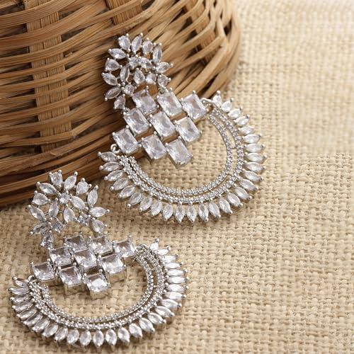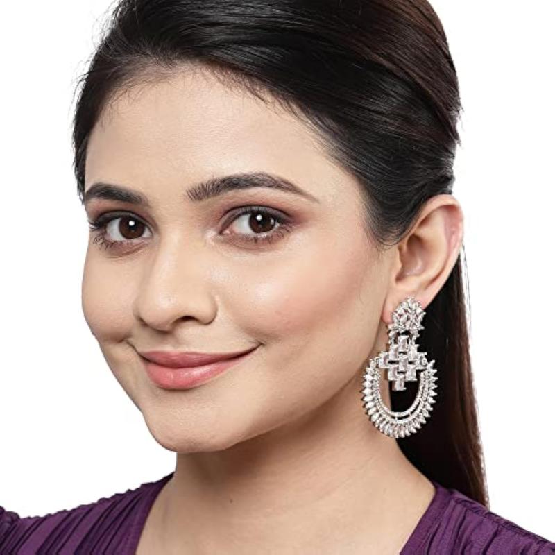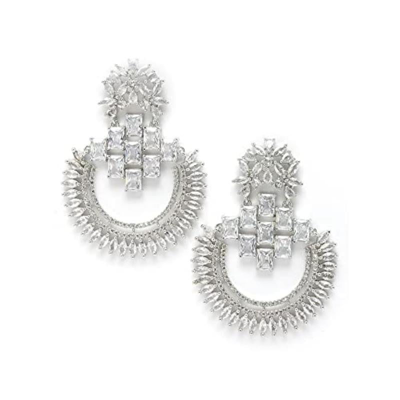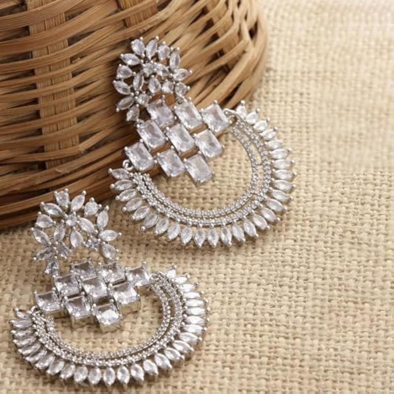 Elegant chandbalis earrings with American diamond studding and rhodium plating.
