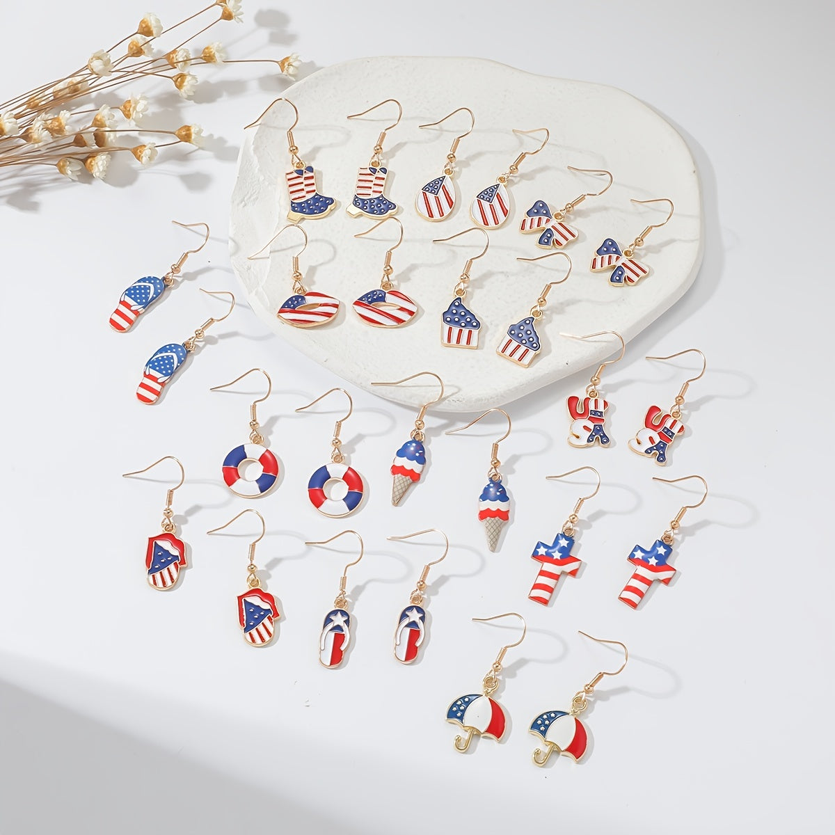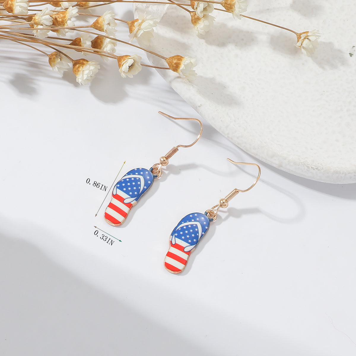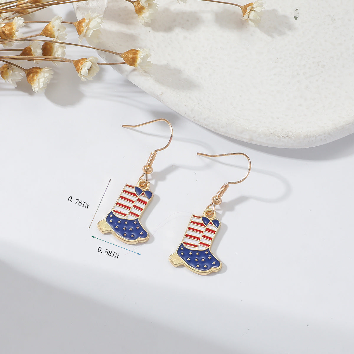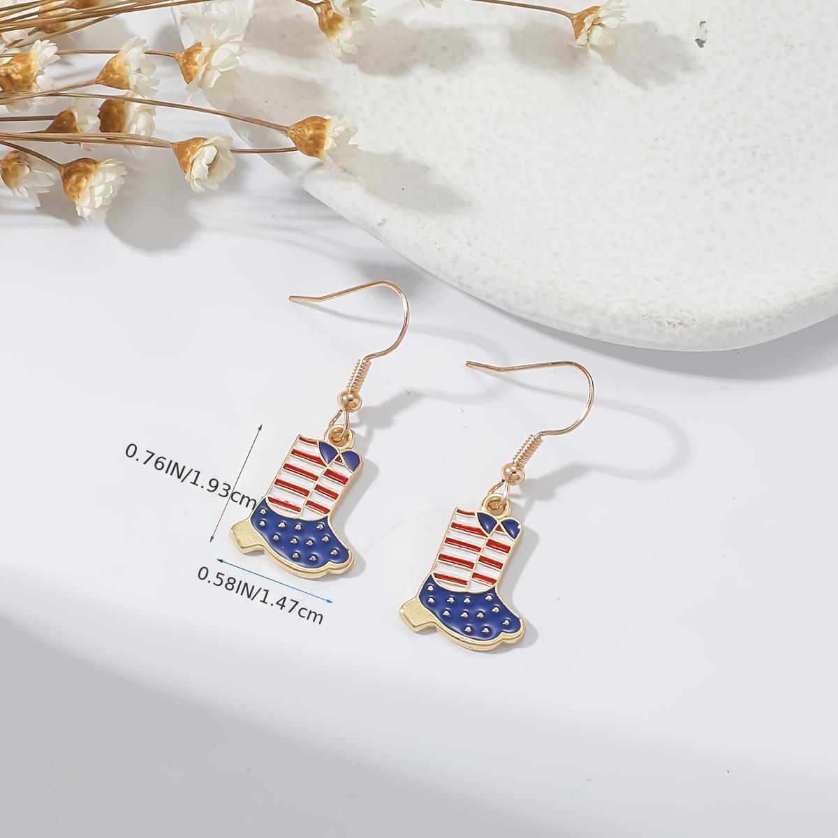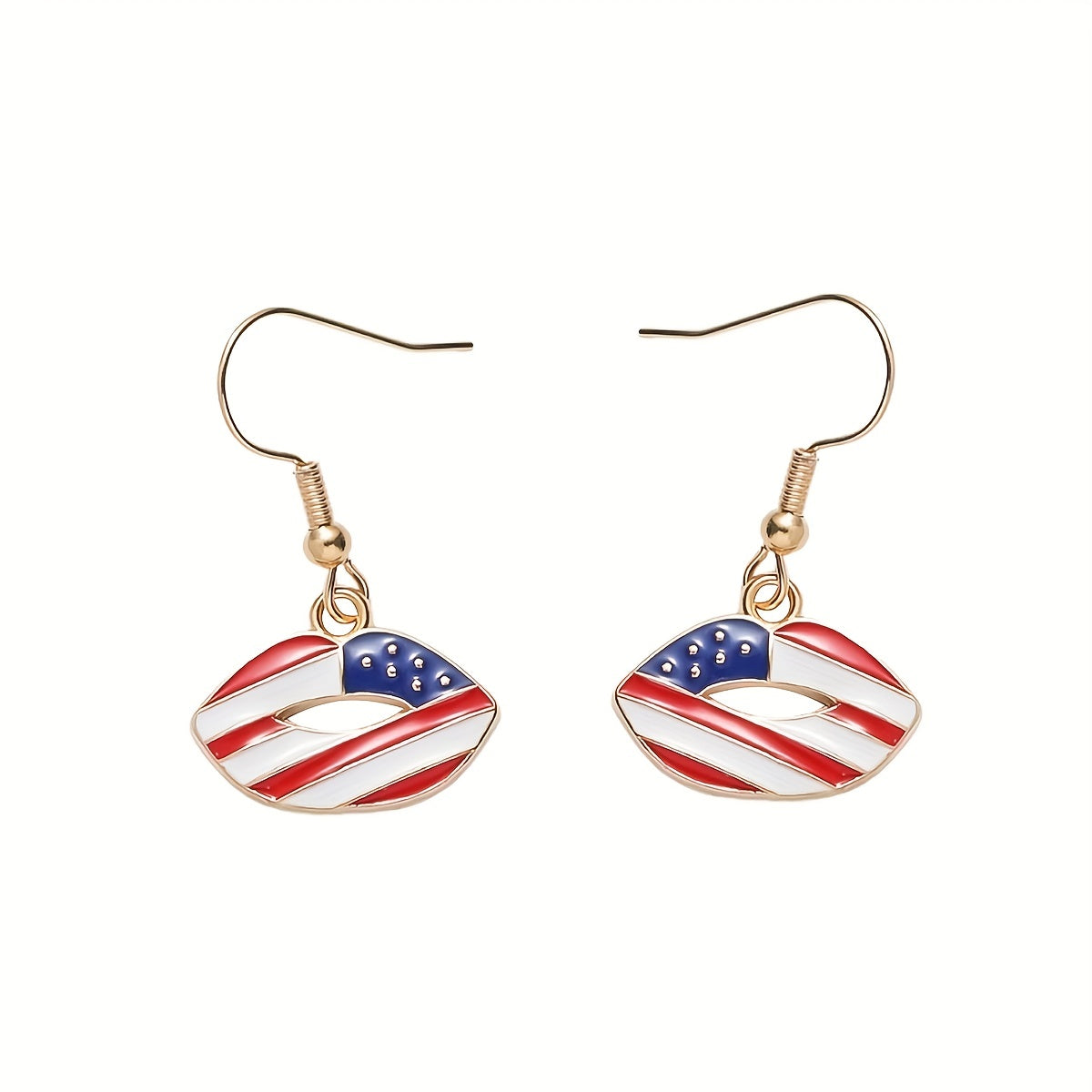 Add a patriotic touch to your outfit with these American flag drop earrings. Perfect for celebrating Independence Day or as a thoughtful gift for a party favor.