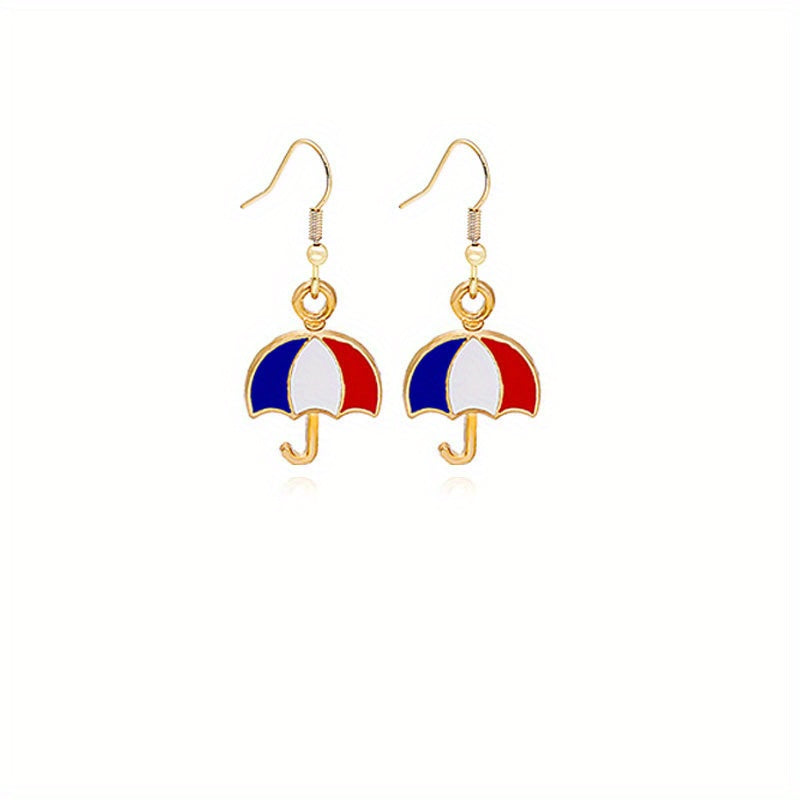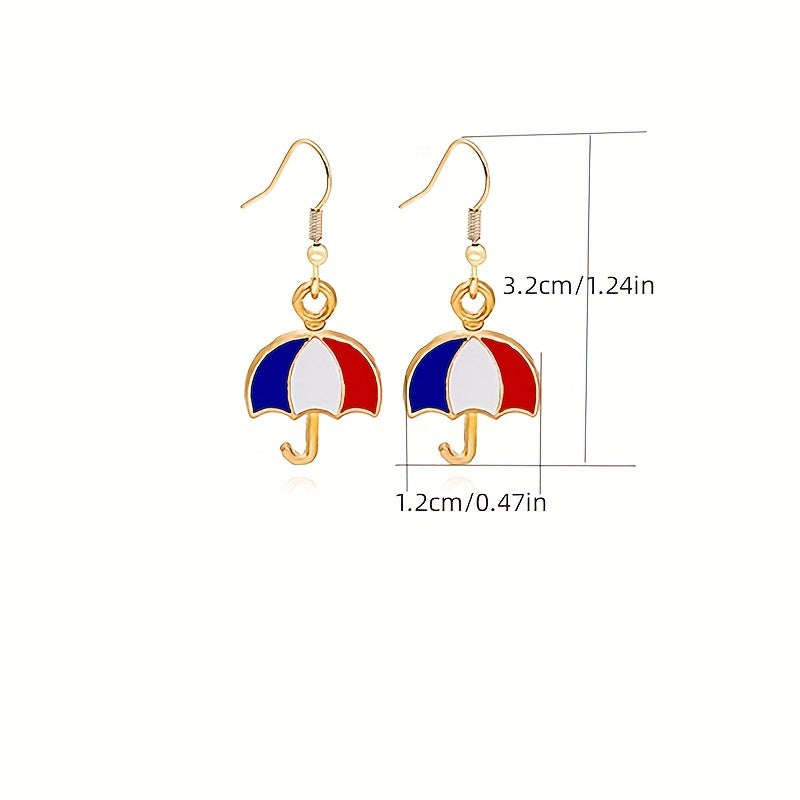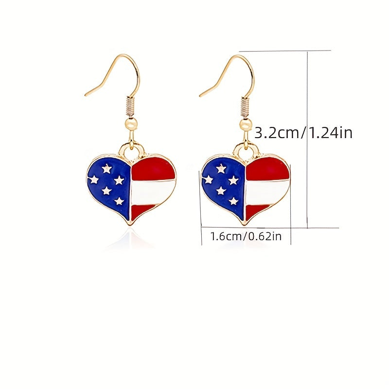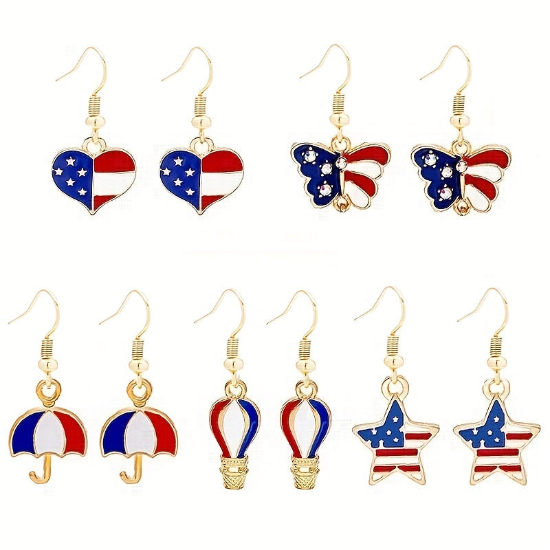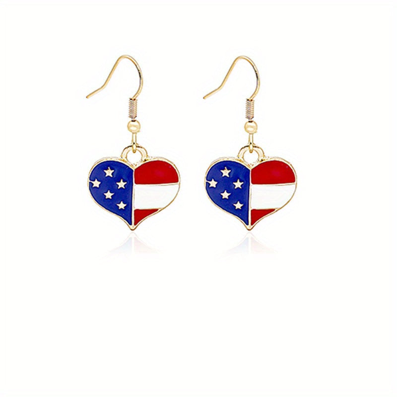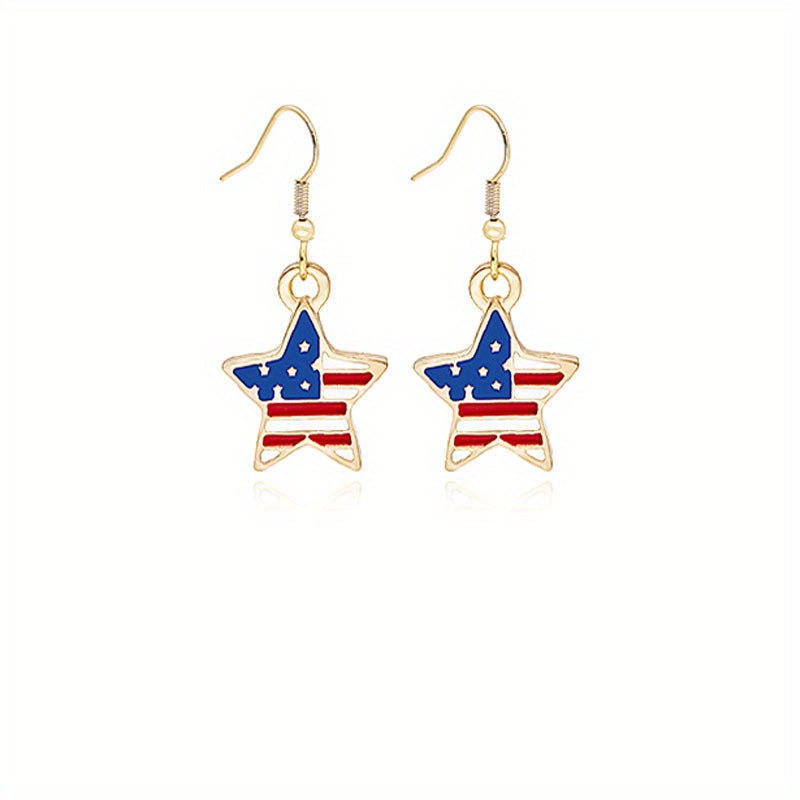 Unique American flag themed earrings featuring a love pentagram design. Suitable for both men and women and made of oil dripping alloy with a butterfly umbrella shape.
