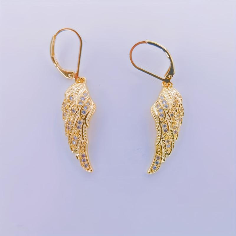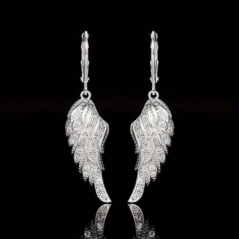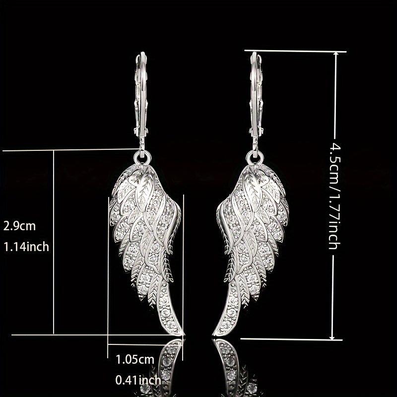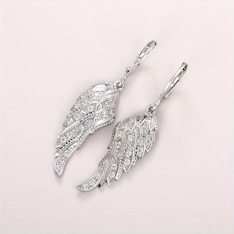 Elegant earrings set featuring angel wings and feather design with sparkling cubic zirconia. Made of high-quality copper, perfect for parties and special occasions.