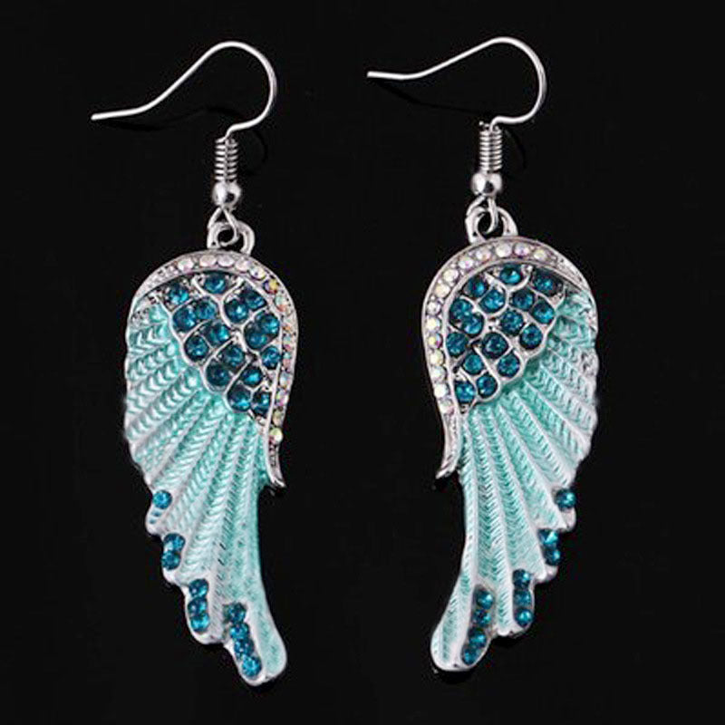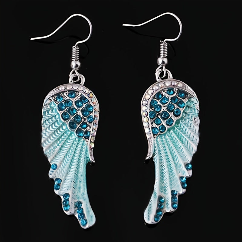 These elegant earrings feature angel wings design with inlaid rhinestones, perfect for adding a touch of glamour to your look.