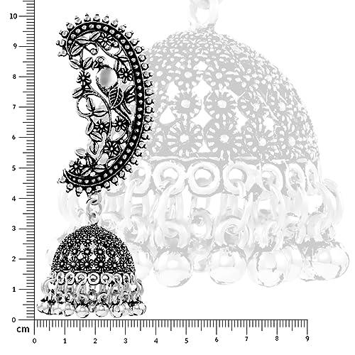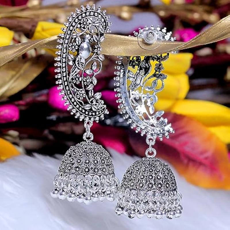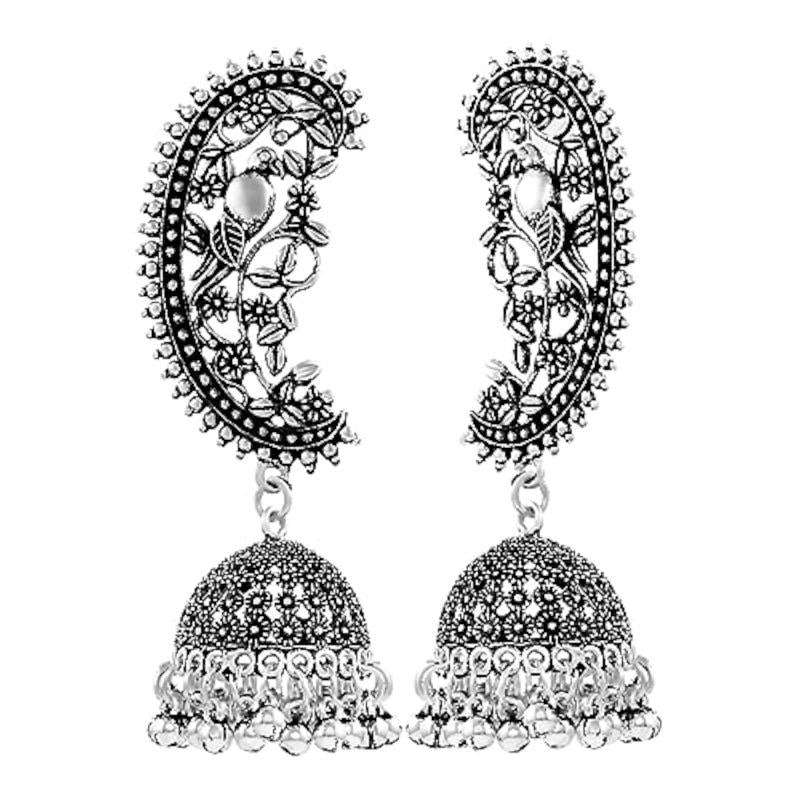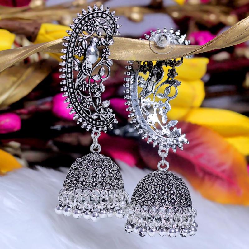 Elegant pair of jhumki earrings with antique oxidised finish, perfect for women.
