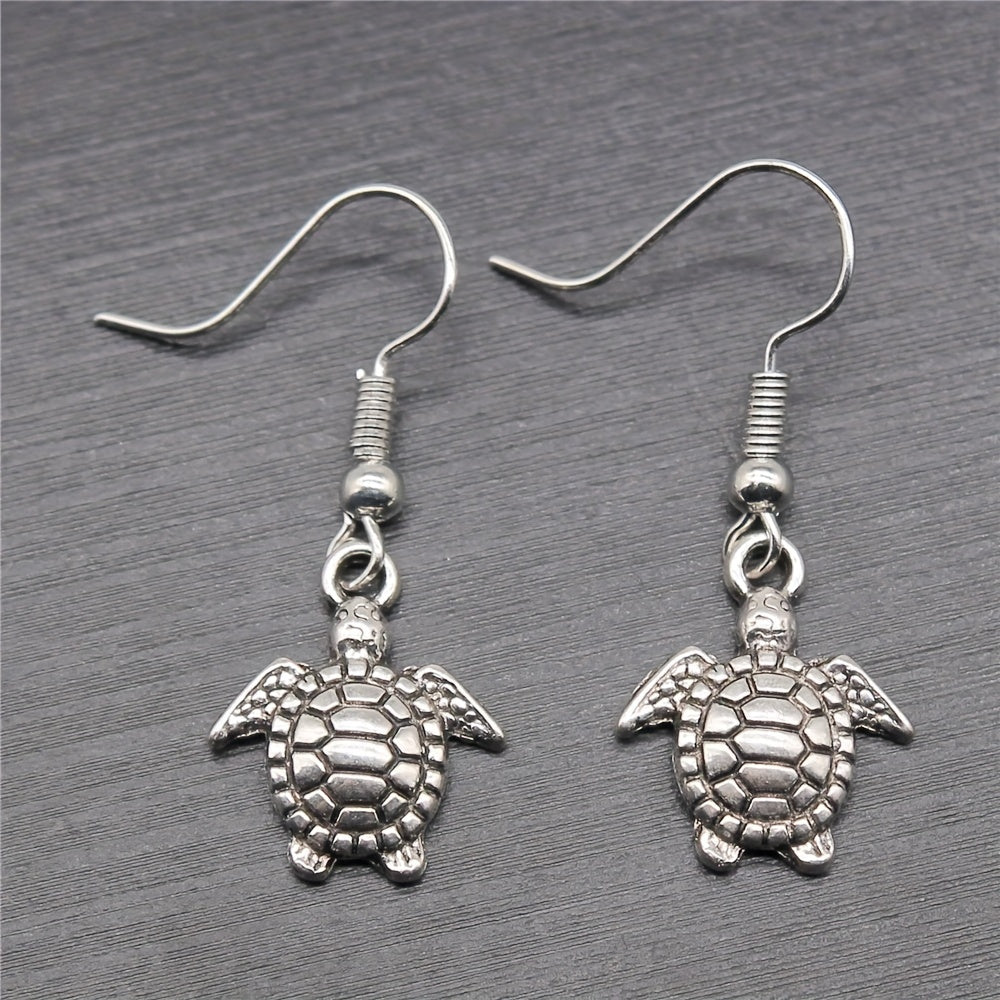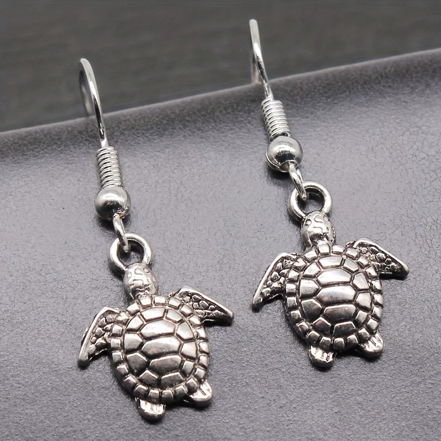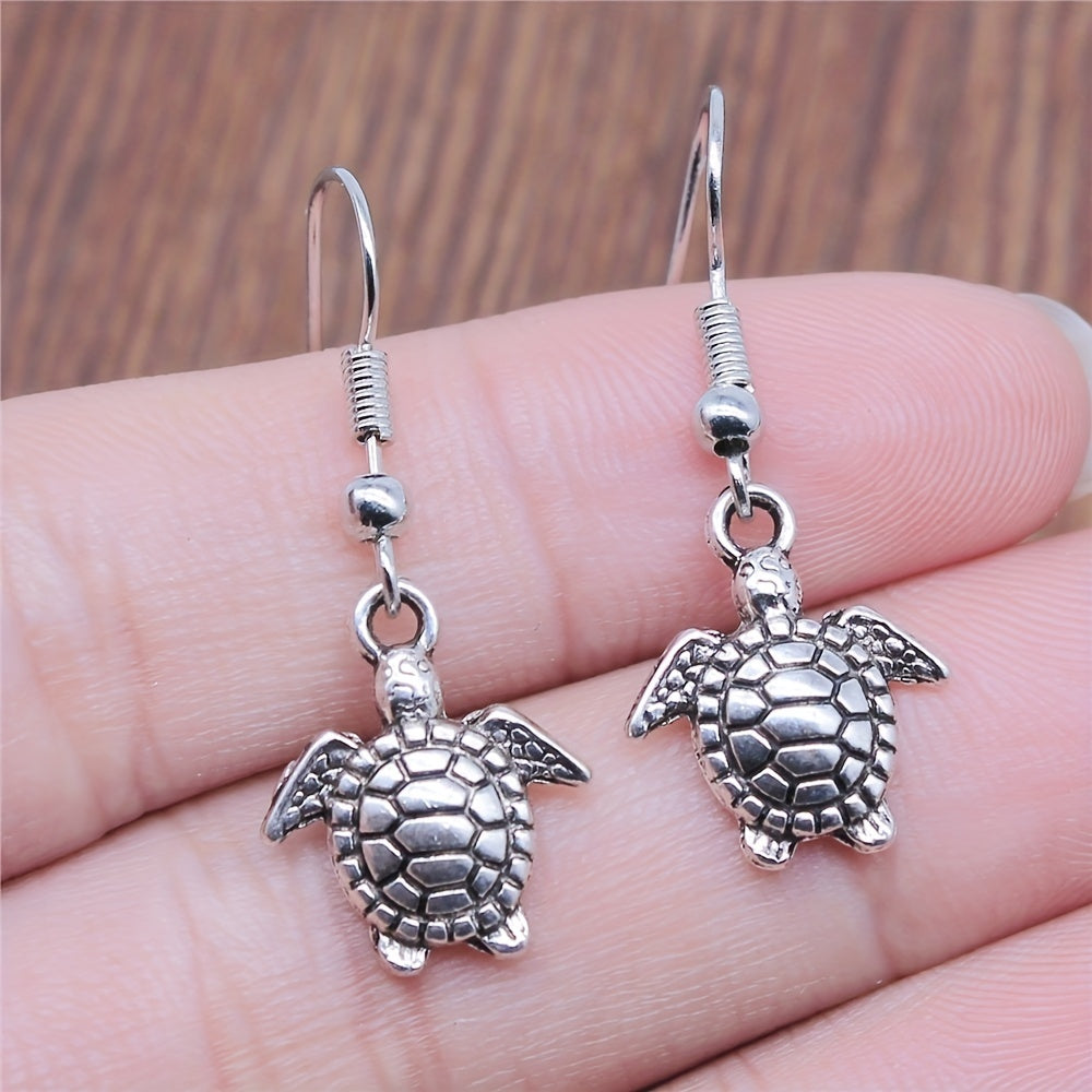 These fashionable antique silvery men's earrings feature a sea turtle design, adding a vintage touch to your style. Made of high-quality materials, these earrings are a unique accessory to showcase your love for animals.