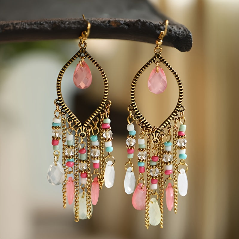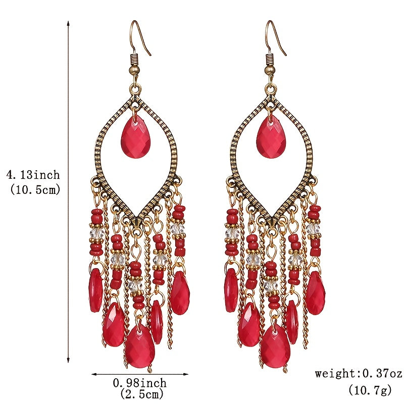 Embrace vintage charm with these long tassel earrings featuring a retro water drop design. Perfect for adding a touch of antique elegance to any outfit.