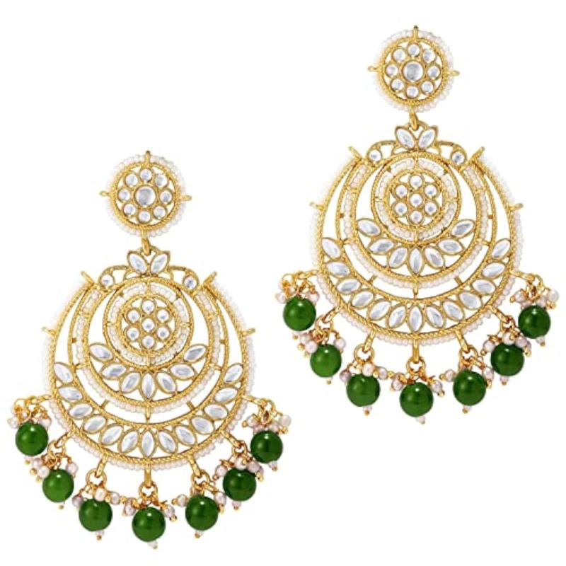 Elegant traditional chandbali earrings adorned with kundans and pearls. Perfect for special occasions or ethnic wear.