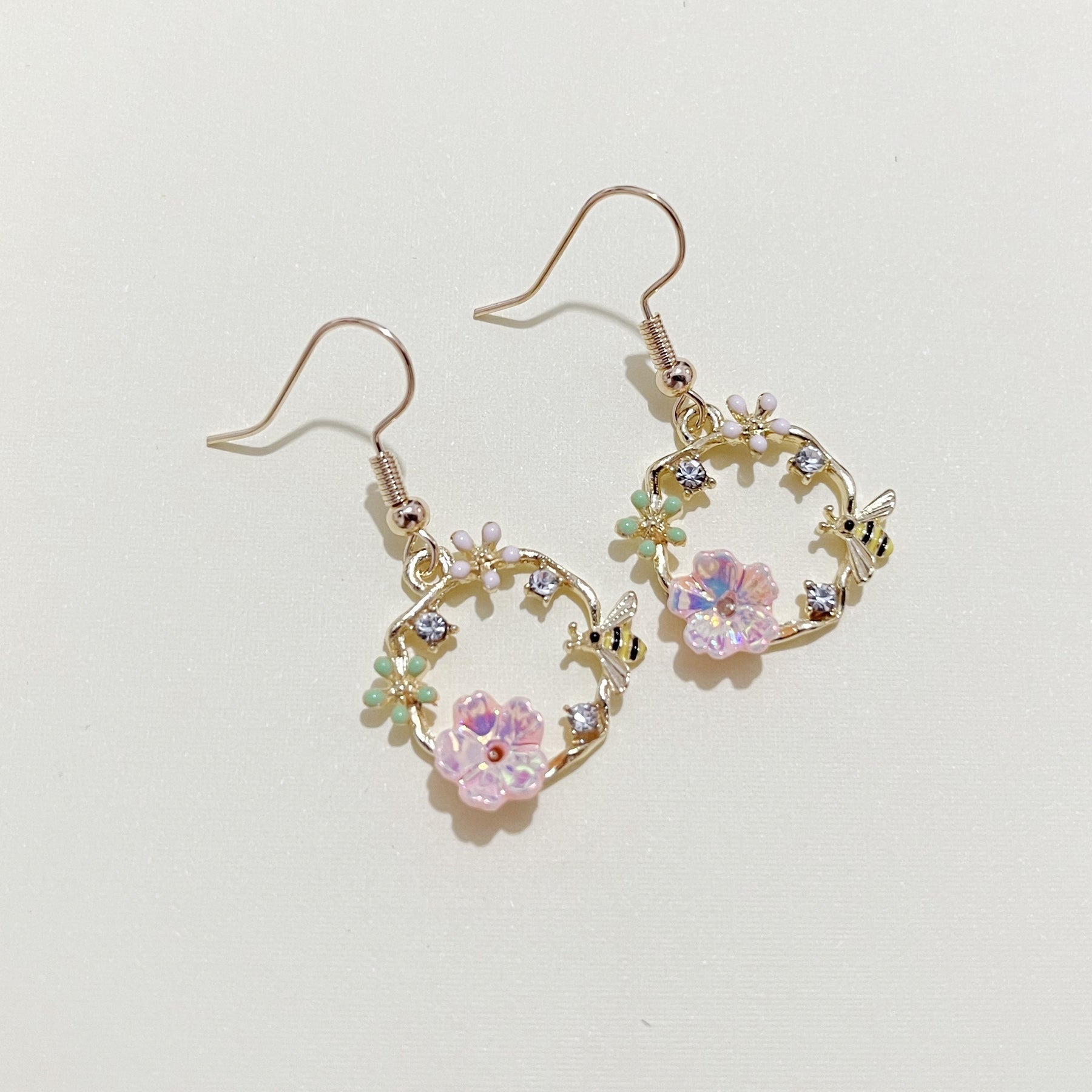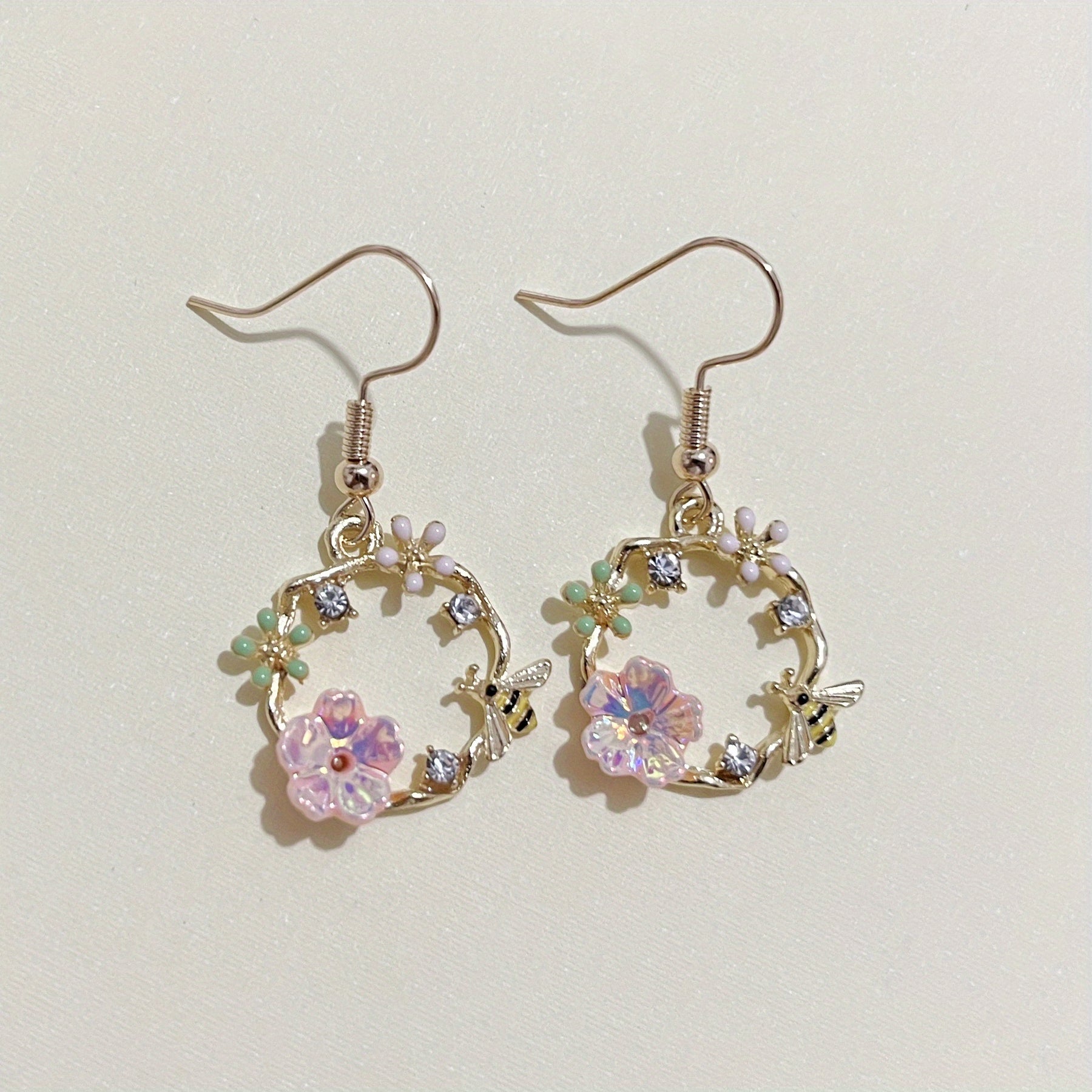 These stylish earrings feature a bee and flower design, making them a perfect accessory for women and girls. They are crafted from high-quality materials and make a great gift for any occasion.