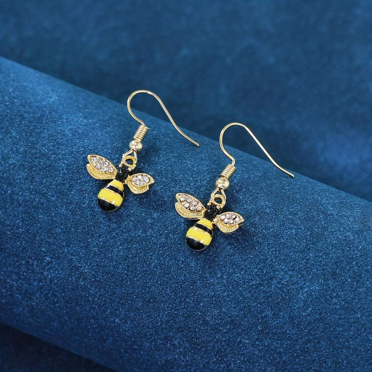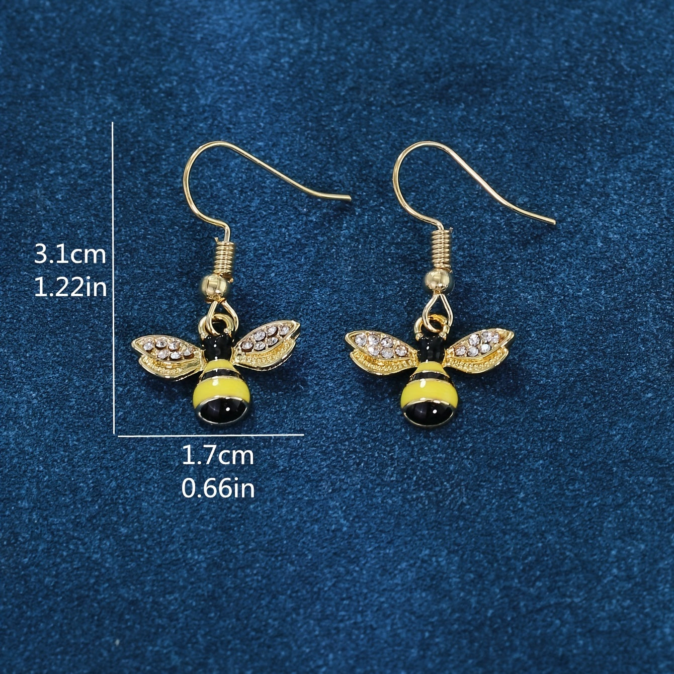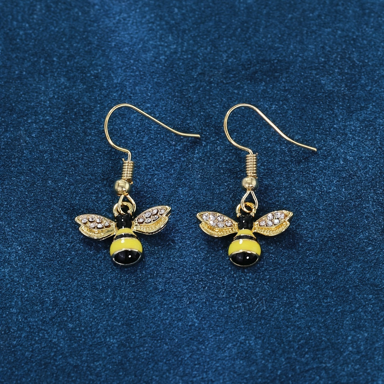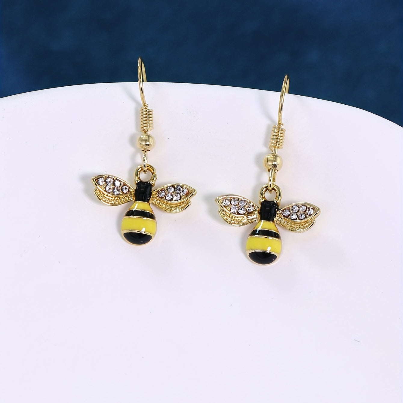 Bee Inlaid Rhinestone Dangle Earrings Zinc Alloy 14K Plated