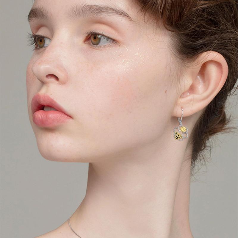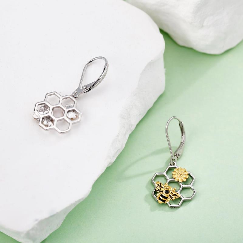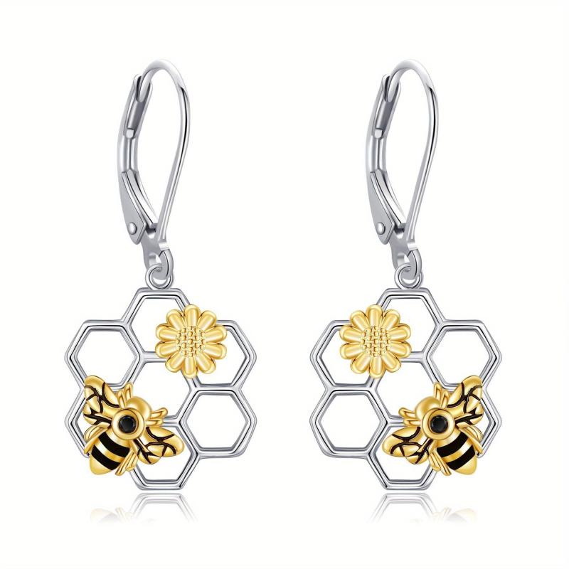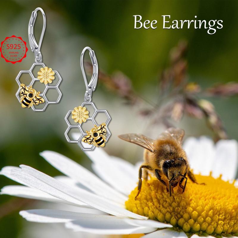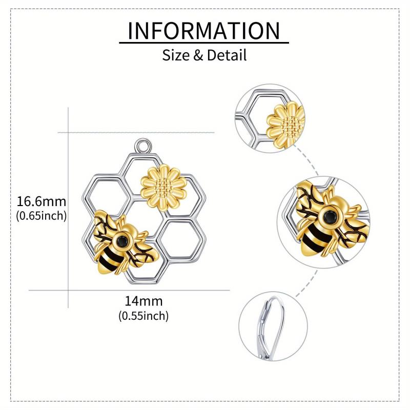 These beautiful bee earrings are crafted from 925 sterling silver, featuring a honeycomb pendant design. Perfect as a Christmas gift for bee jewelry lovers.