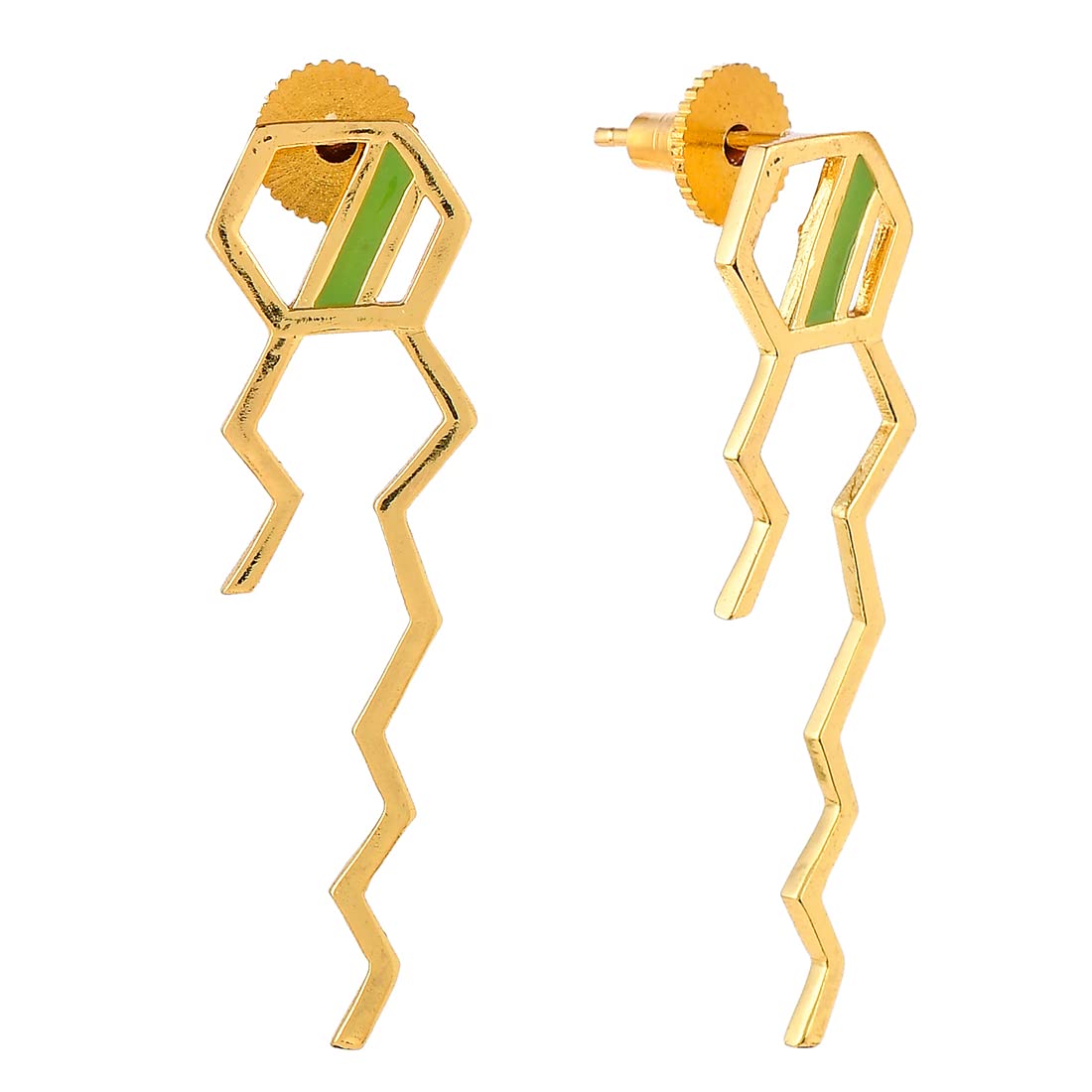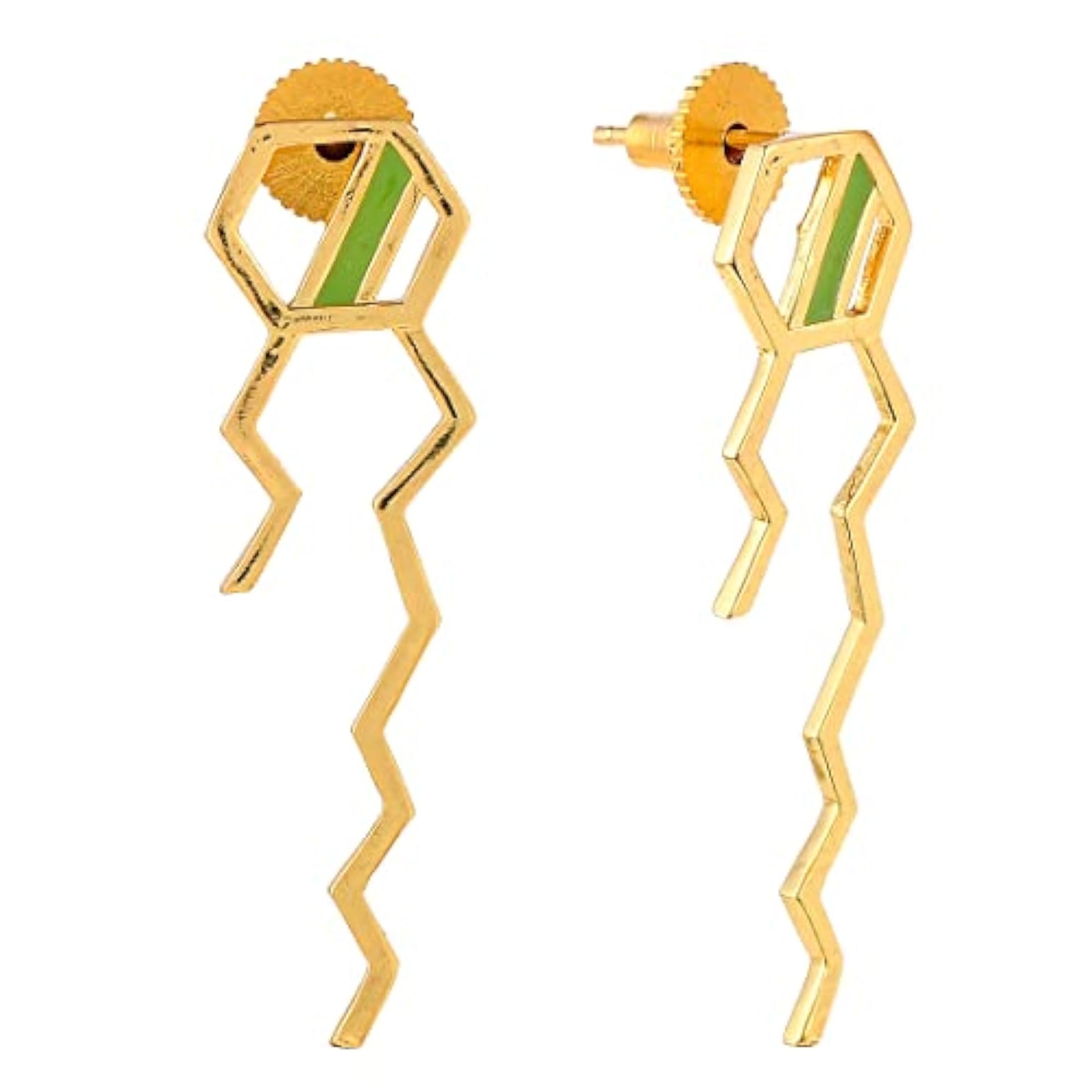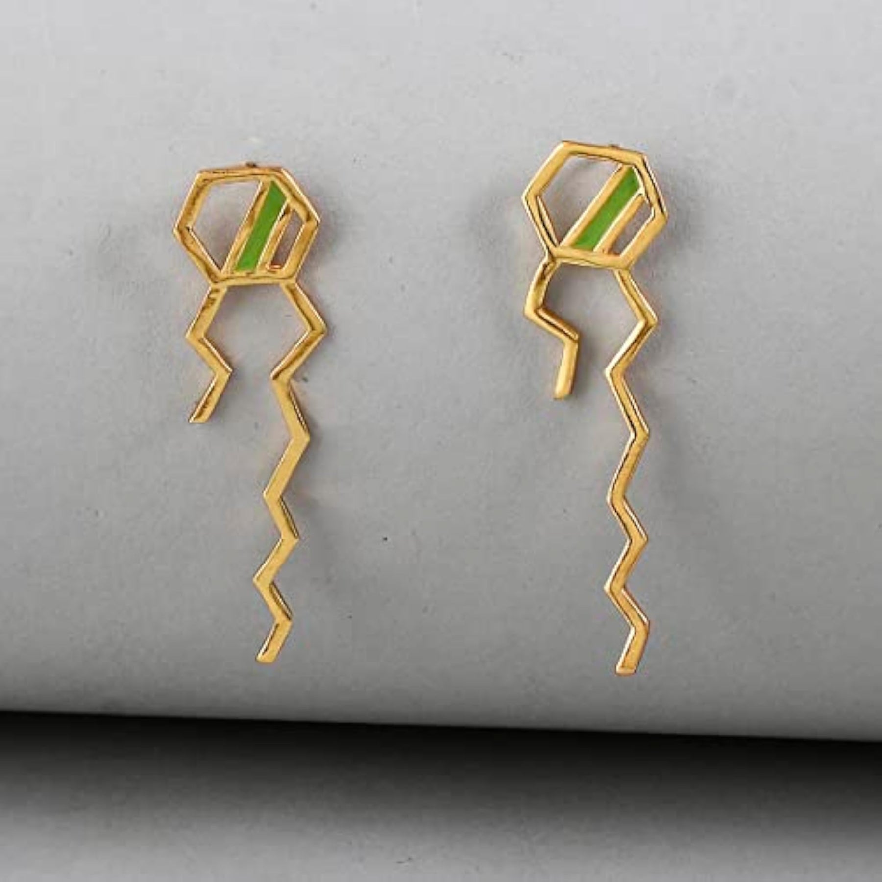 These unique earrings feature a benzene squiggle pattern design in vibrant colors. Handcrafted and enamel coated for a beautiful finish.