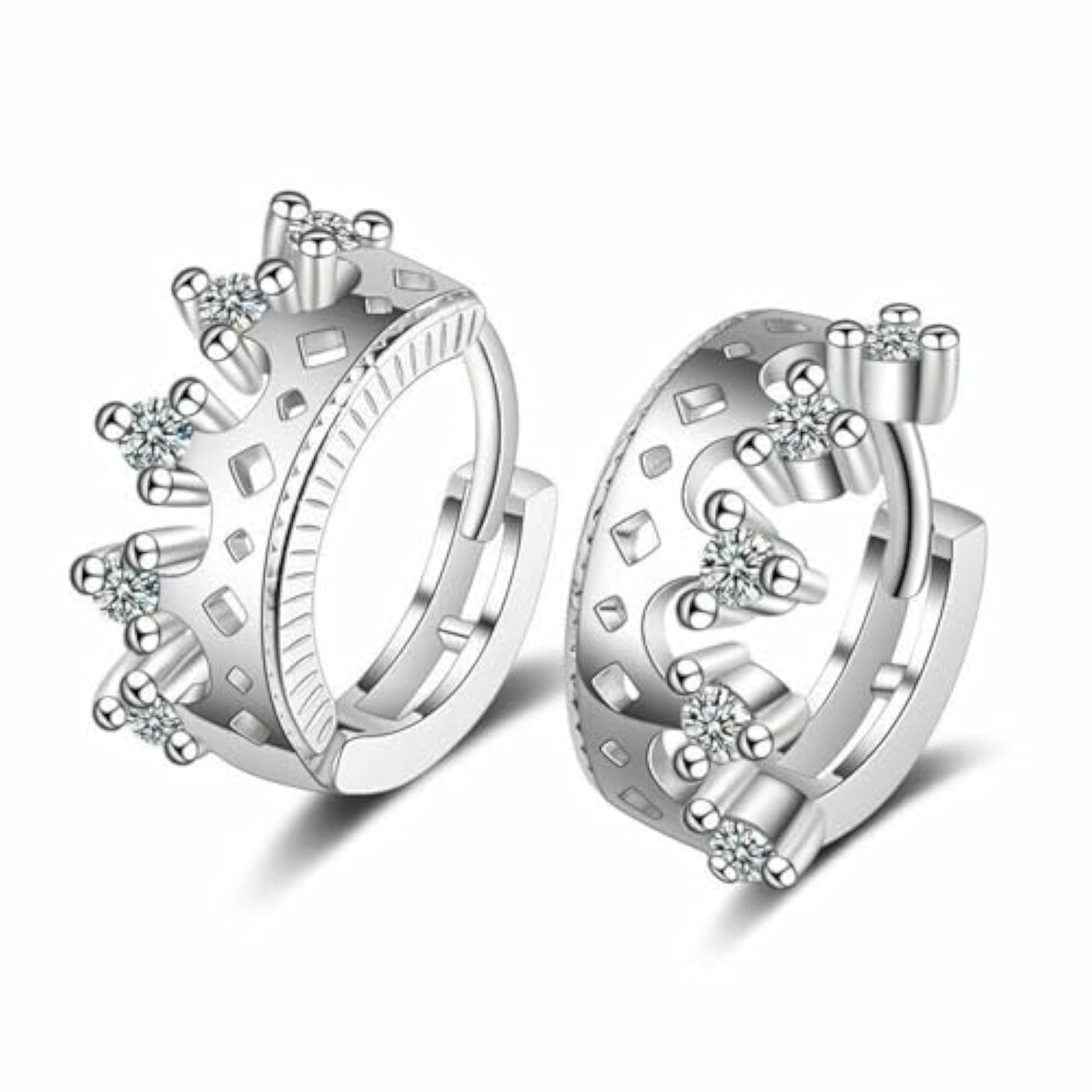 Make a regal statement with these stunning crown hoop earrings adorned with sparkling crystals. Perfect for adding a touch of glamour to your outfit.