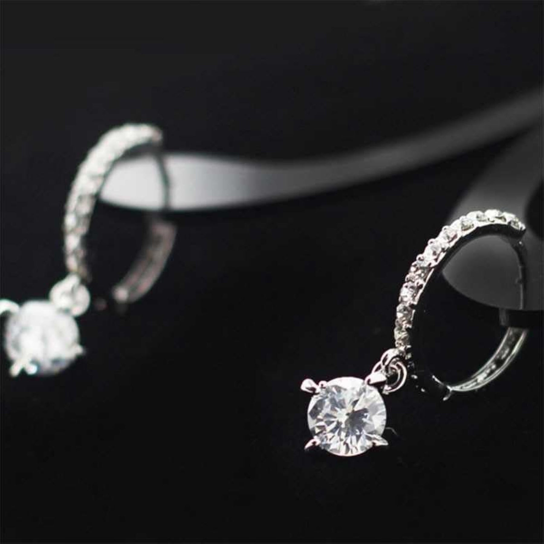 Elevate your look with these stunning cubic zirconia earrings featuring a square drop design and hoop closure. Perfect for adding a touch of glamour to any outfit.