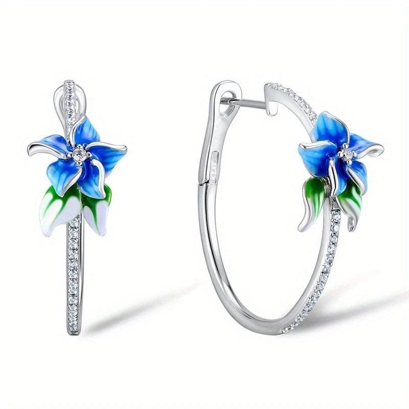 Elegant hoop earrings featuring fancy crystal flower design, perfect for anniversary gifts.