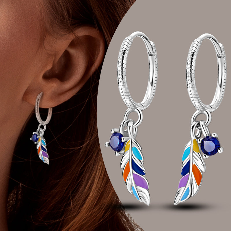 Make a bold statement with these colorful enamel wings feather earrings. Crafted in silver, these earrings are perfect for adding a touch of boho chic to your outfit.
