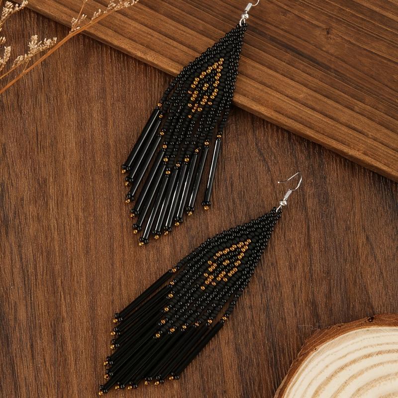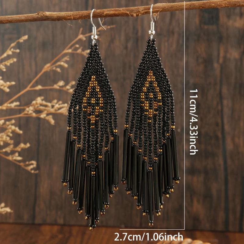 These bohemian-inspired tassel drop earrings are perfect for daily wear and parties. Handcrafted with golden accents, they add a quirky touch to any outfit. Makes a great gift for women.