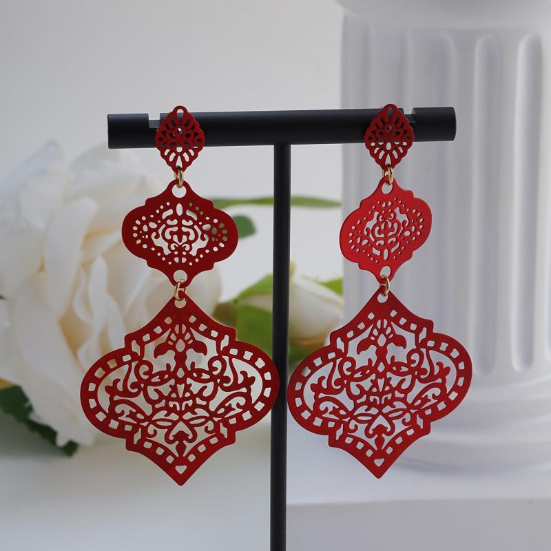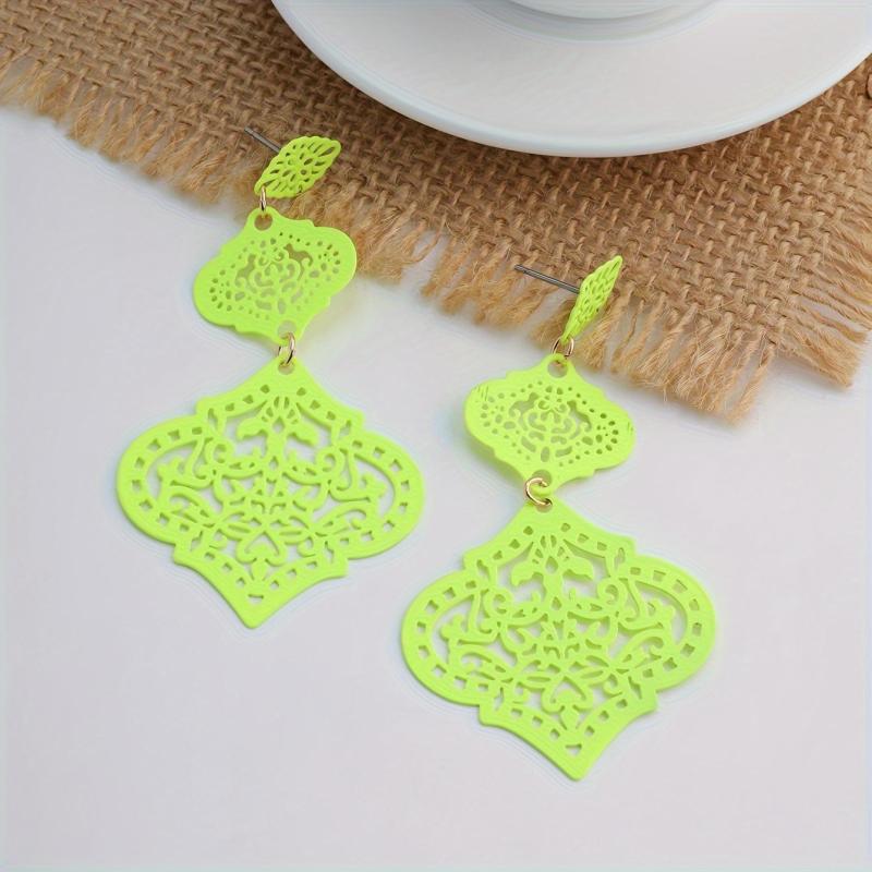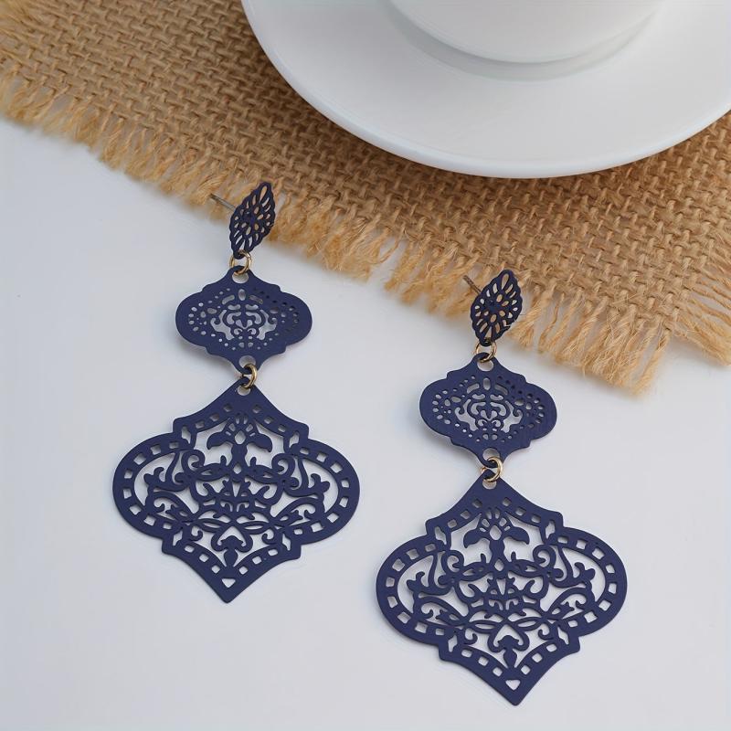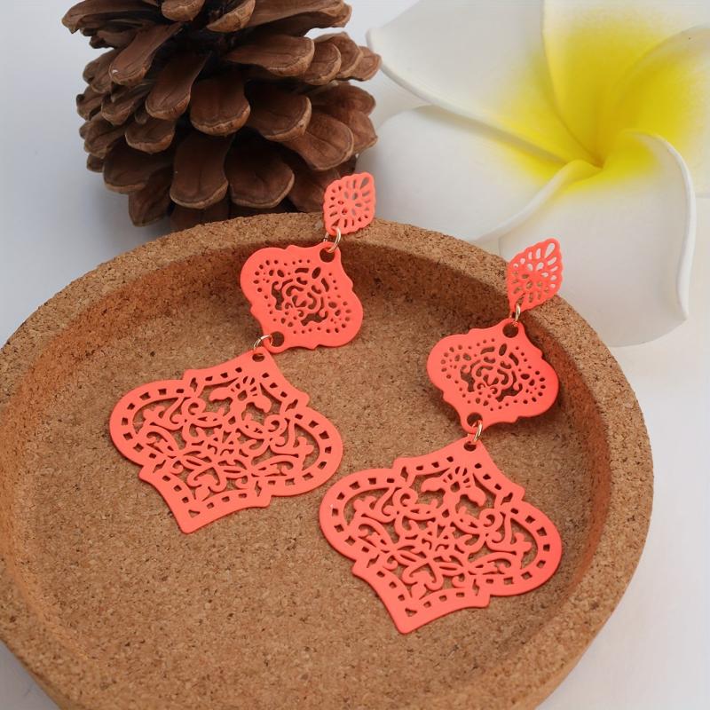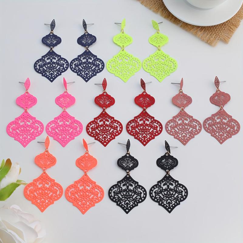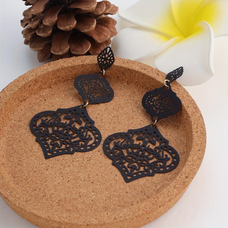 These stylish bohemian dangle earrings feature a hollow flower design that can be paired with a variety of outfits for daily wear, parties, or casual dating.