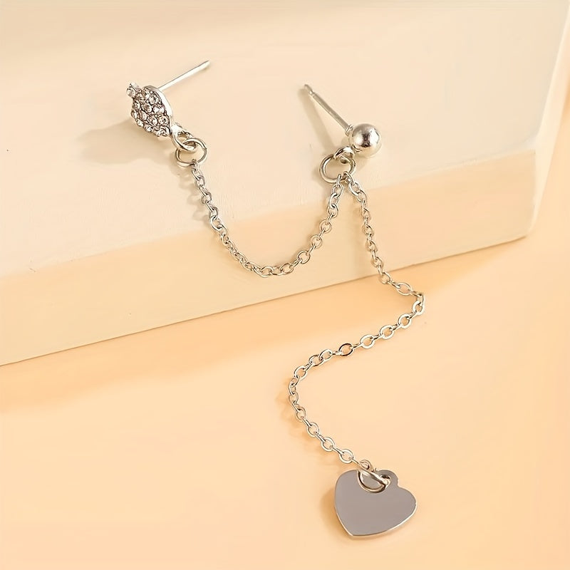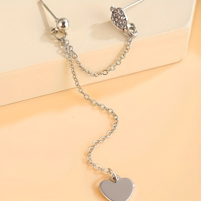 These retro bohemian style earrings feature a double silvery heart chain design that adds a touch of elegance to your look. Made from zinc alloy with silver plating, they are perfect for weddings and special occasions.