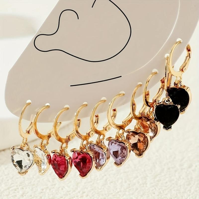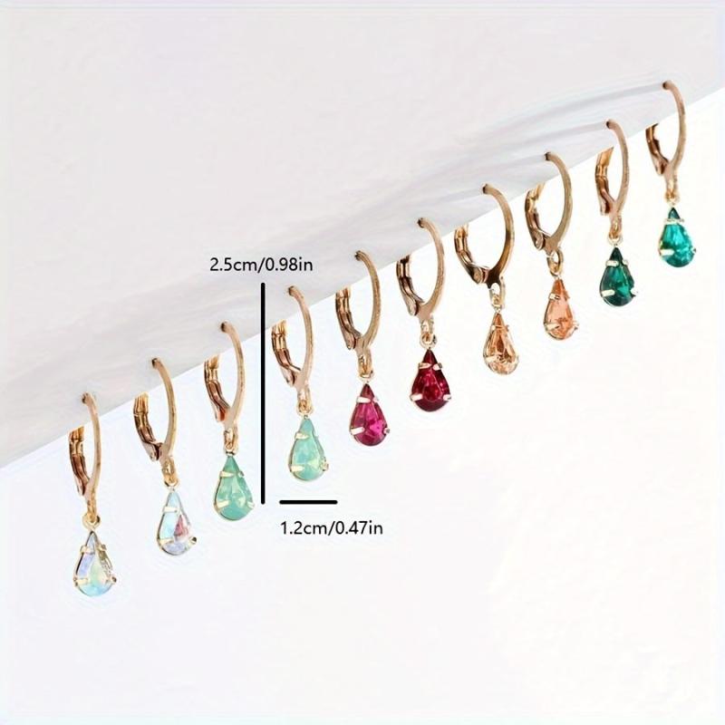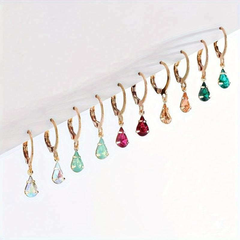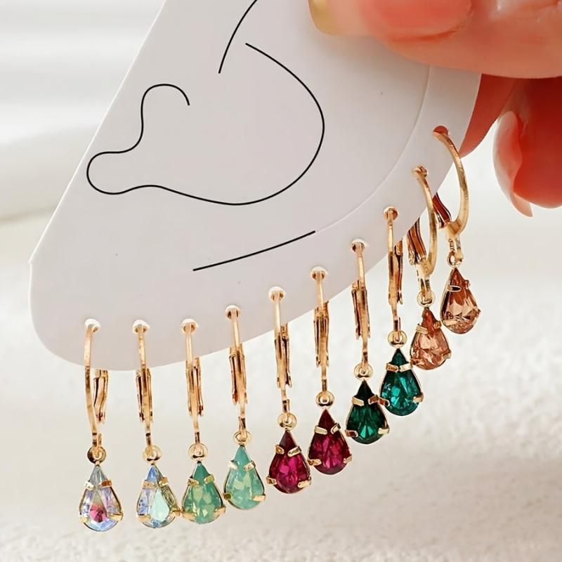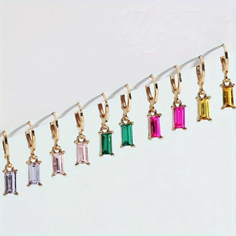 Complete your vacation look with this set of 5 bohemian style earrings featuring colorful synthetic gemstones in tear drop, rectangle, and heart shapes. Elevate your accessory game with these vibrant dangle earrings.