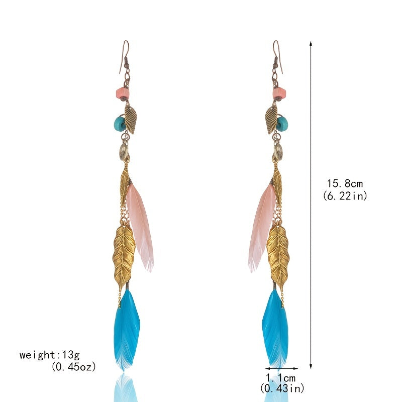 These bohemian style earrings feature feather tassels with leaf decoration. Perfect accessory for women, girls, or daughters.