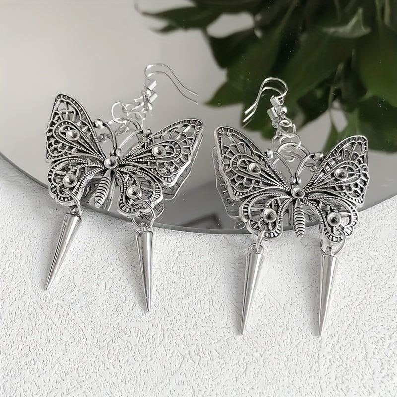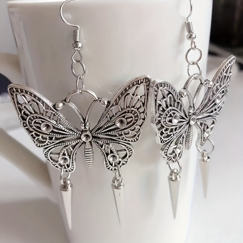 These Bohemian style earrings feature a retro hollow butterfly pendant design, perfect for men who love punk jewelry.