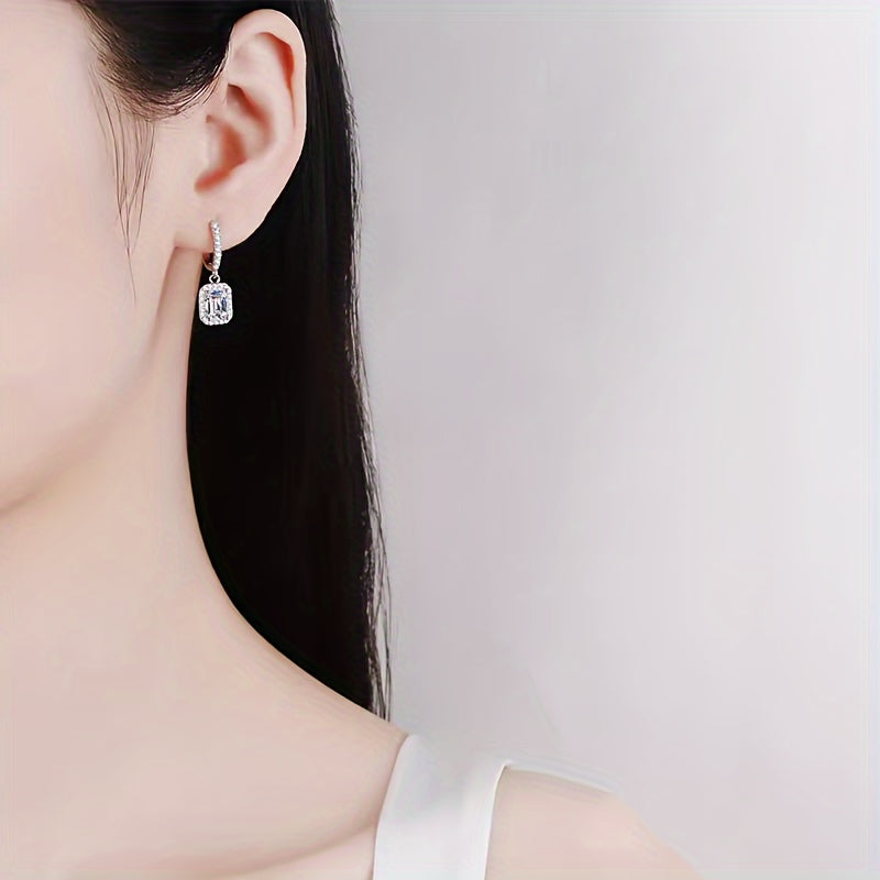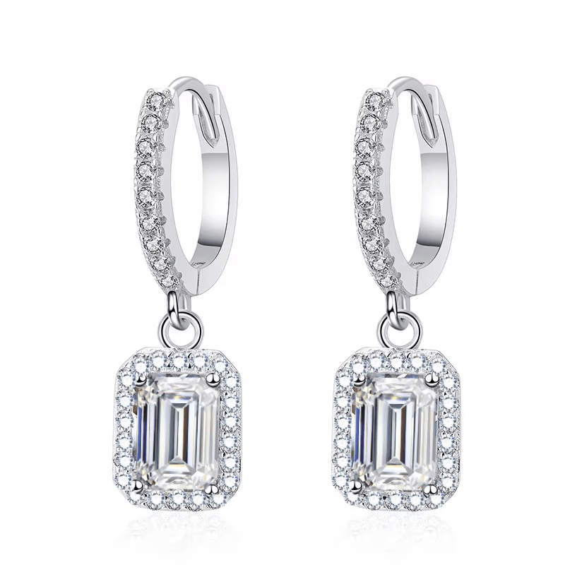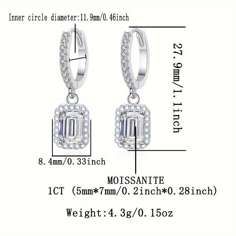 These bohemian style earrings feature a 1 carat rectangular Moissanite stone set in S925 silver. Perfect for daily wear or special occasions.