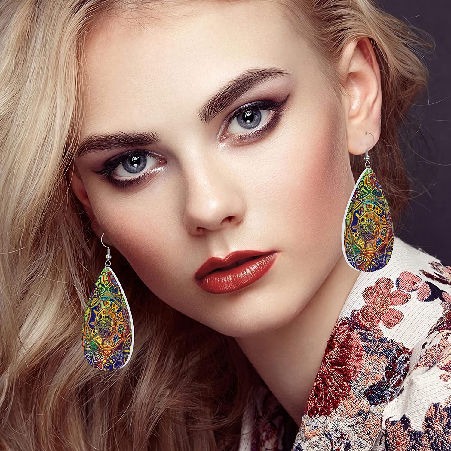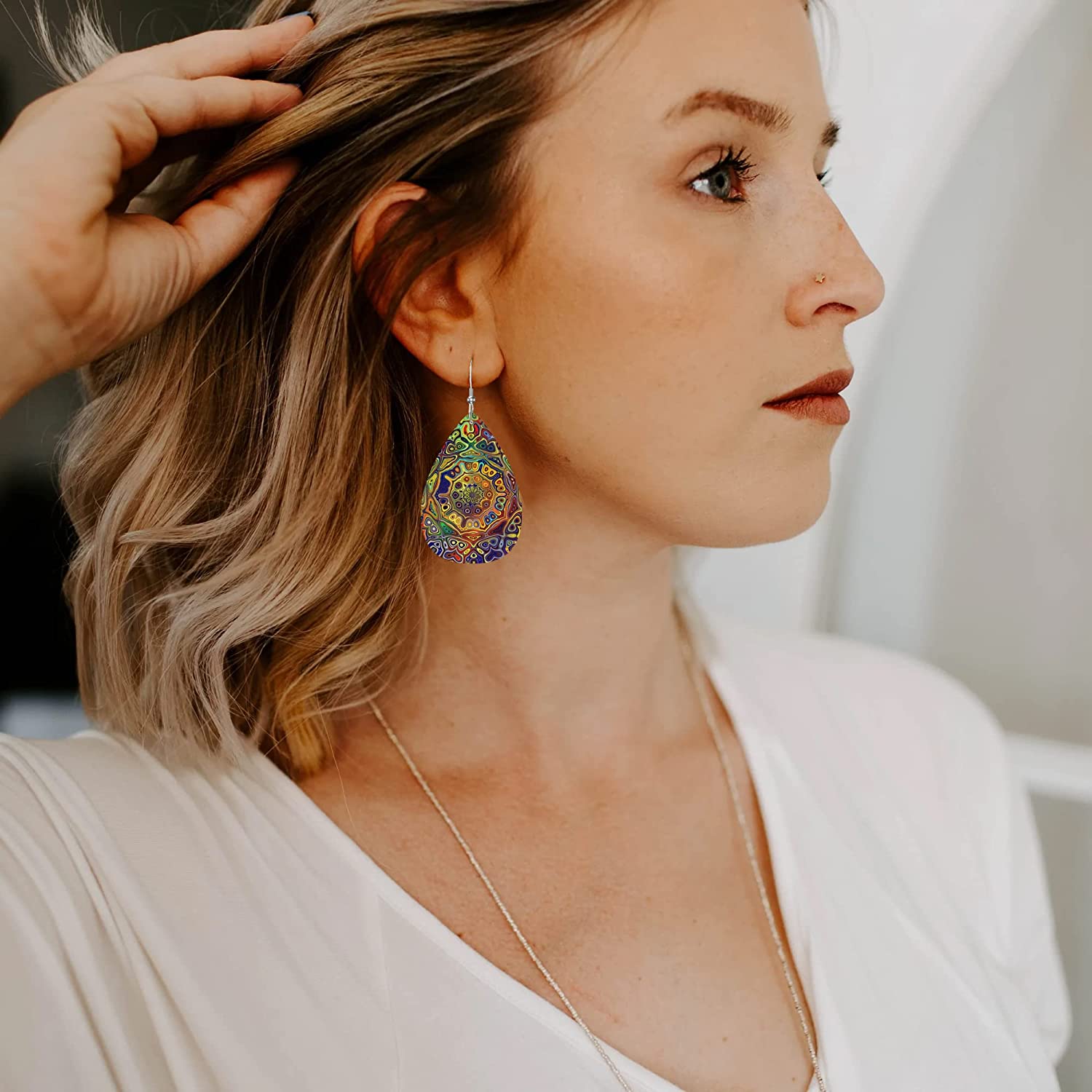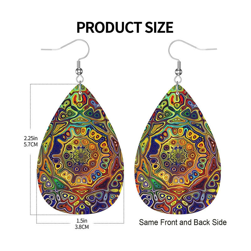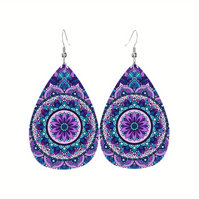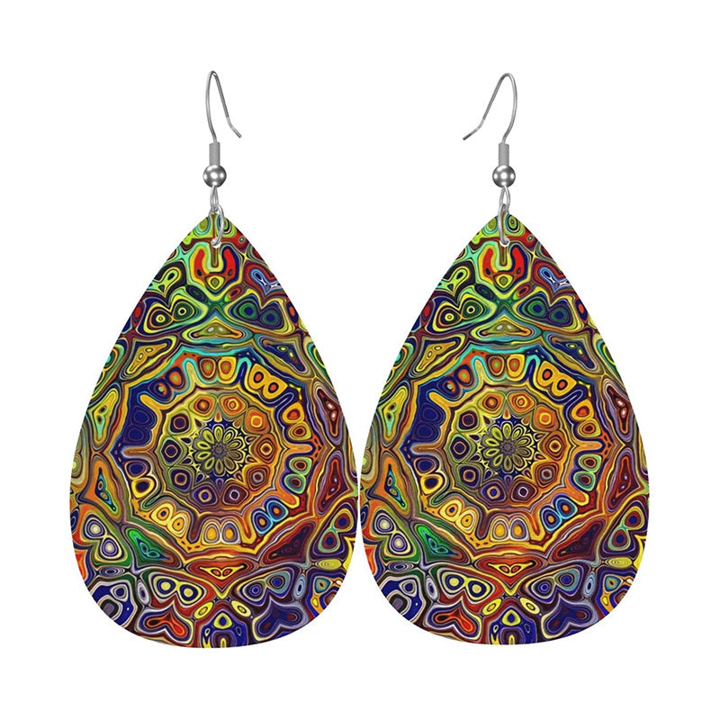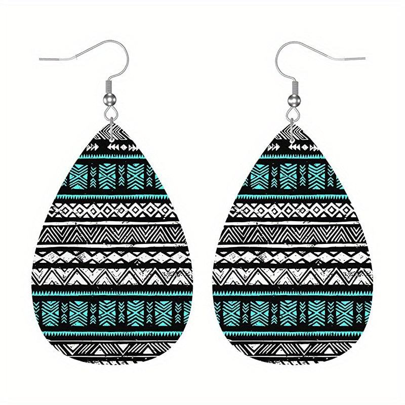 Stylish PU leather teardrop earrings with bohemian pattern design. Perfect for parties and everyday wear.