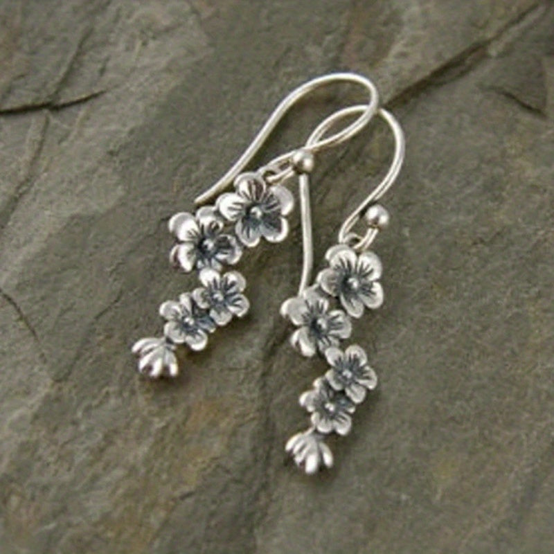 These retro hook earrings feature a delicate plum blossom design for a bohemian look. Made from zinc alloy with a silver plating, they are a perfect gift for women and girls.