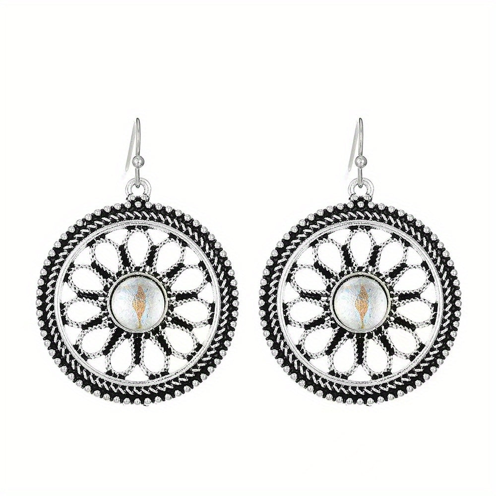 Add a touch of Bohemian flair to your outfit with these retro geometric round flower earrings. Perfect for parties and special occasions.