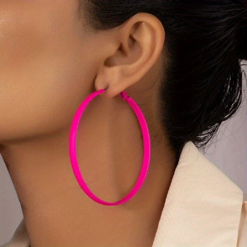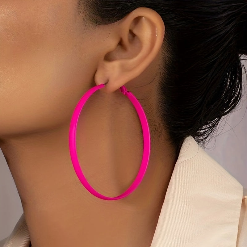Add a touch of bohemian style to your look with these golden, silvery, and hot pink hoop earrings. Made of high-quality zinc alloy, they make a perfect gift for any fashion-forward individual.