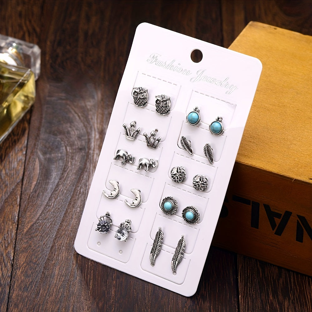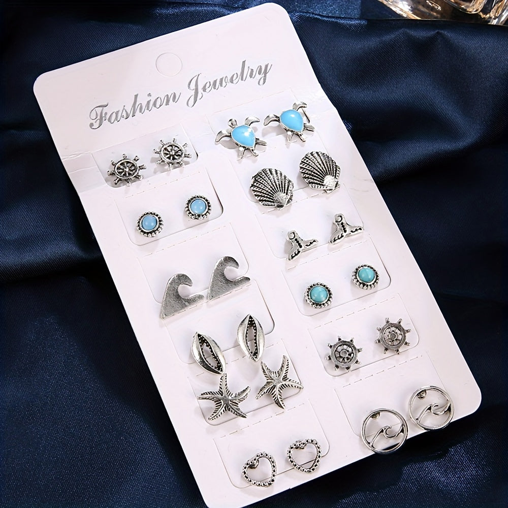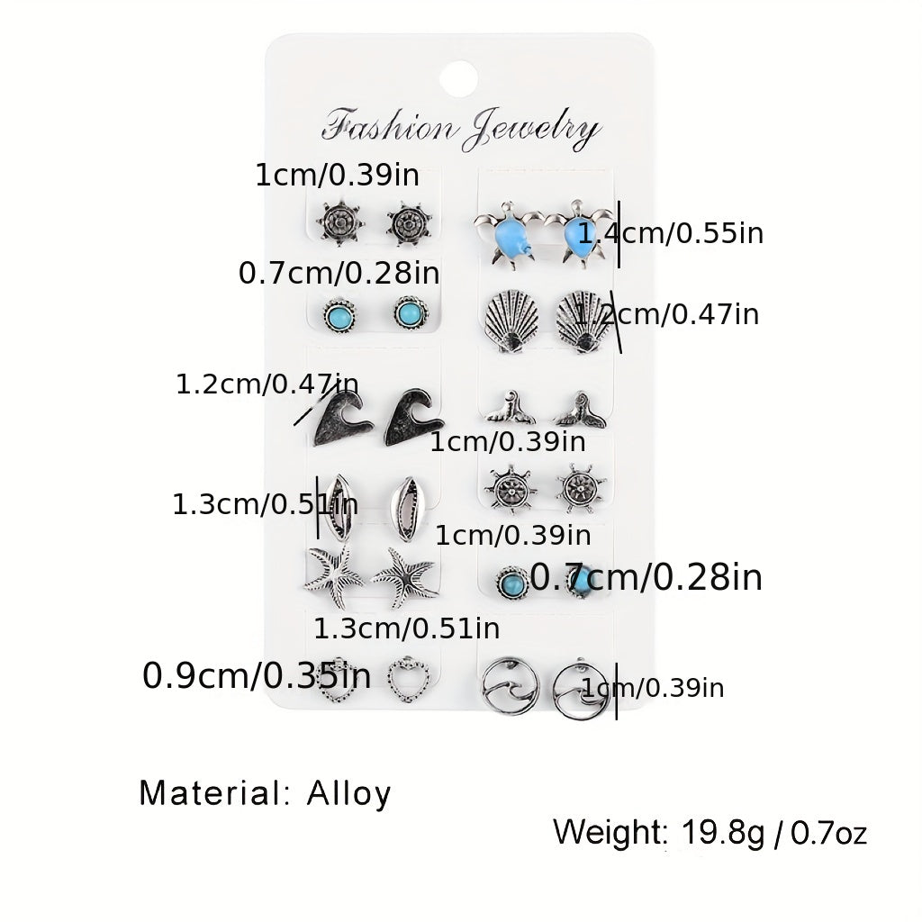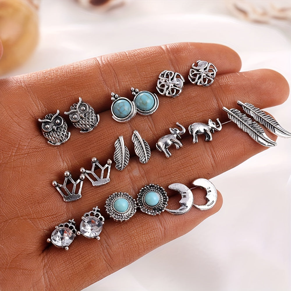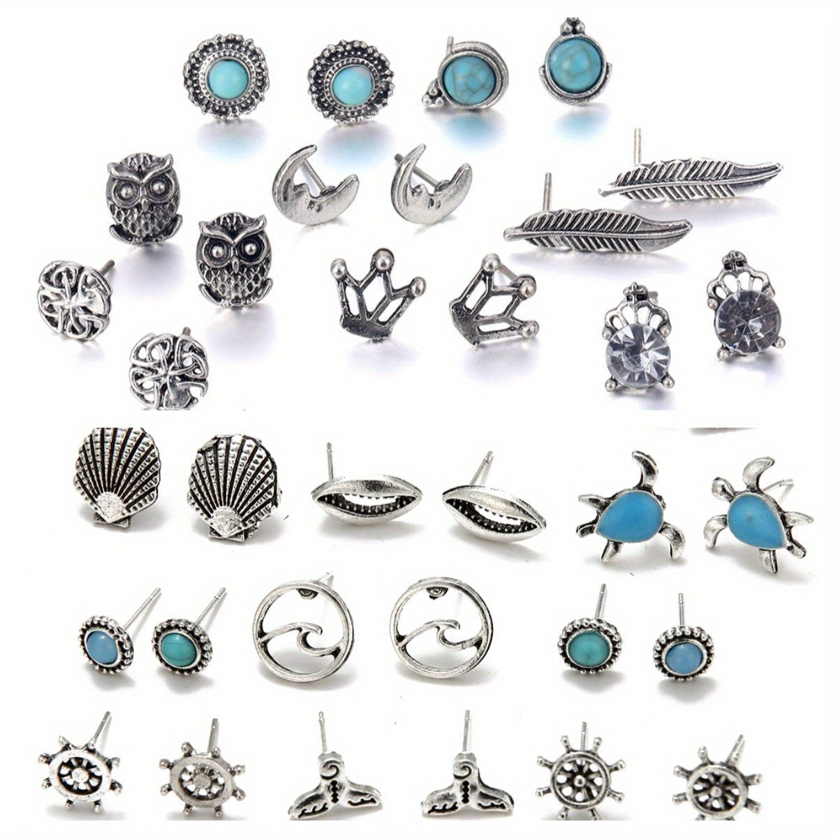 Enhance your style with this set of 22 pairs of silvery stud earrings featuring a retro bohemian design. Made of high-quality alloy, these earrings will add a touch of elegance to any outfit. Perfect for daily wear or special occasions.