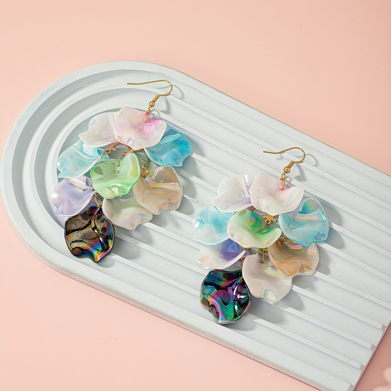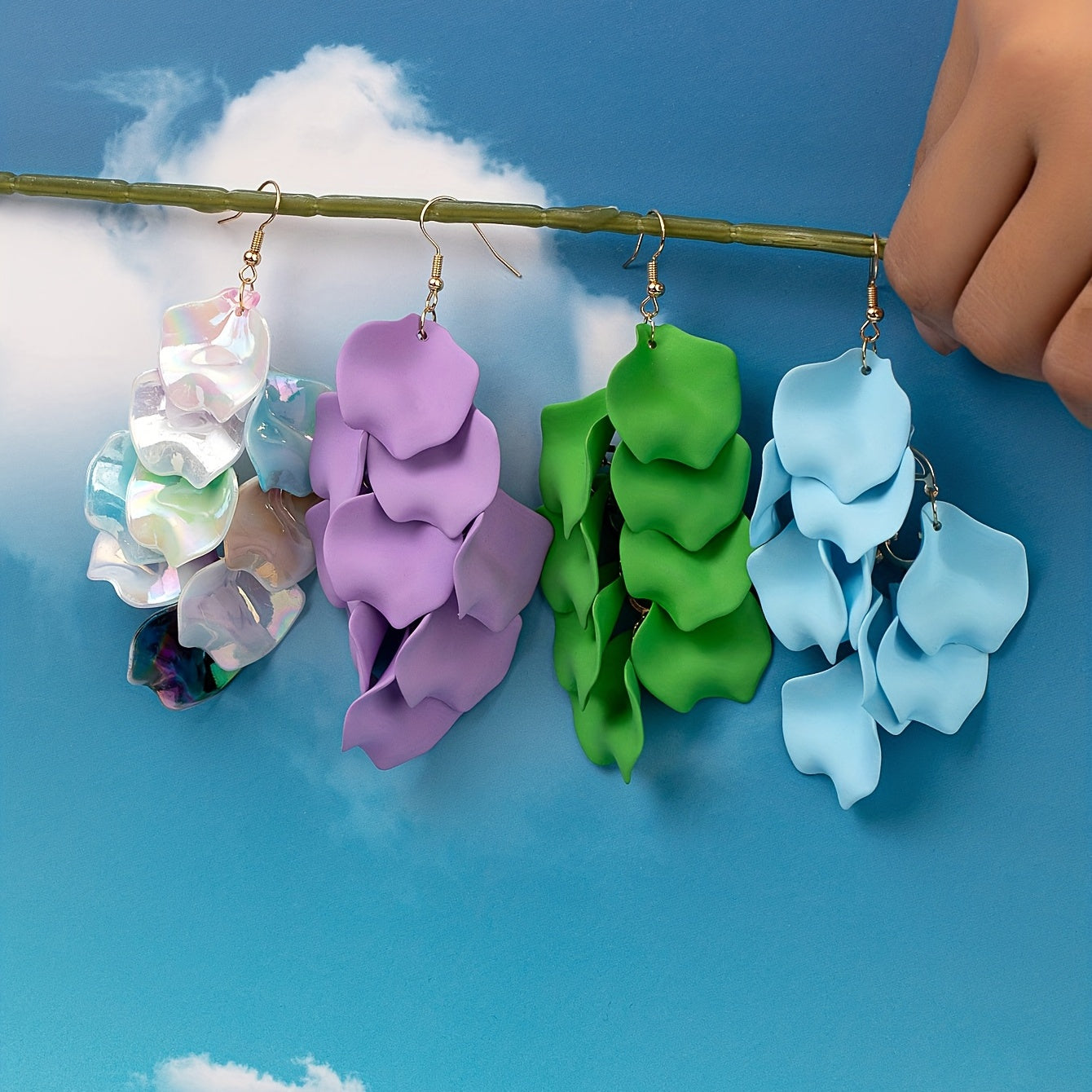 Elevate your style with these delicate long dangle earrings featuring flower petal design. Made of zinc alloy with 14K gold plating, these earrings make a perfect gift for any fashion-forward female.