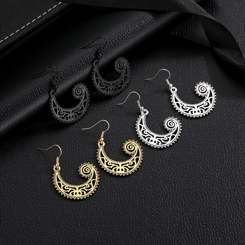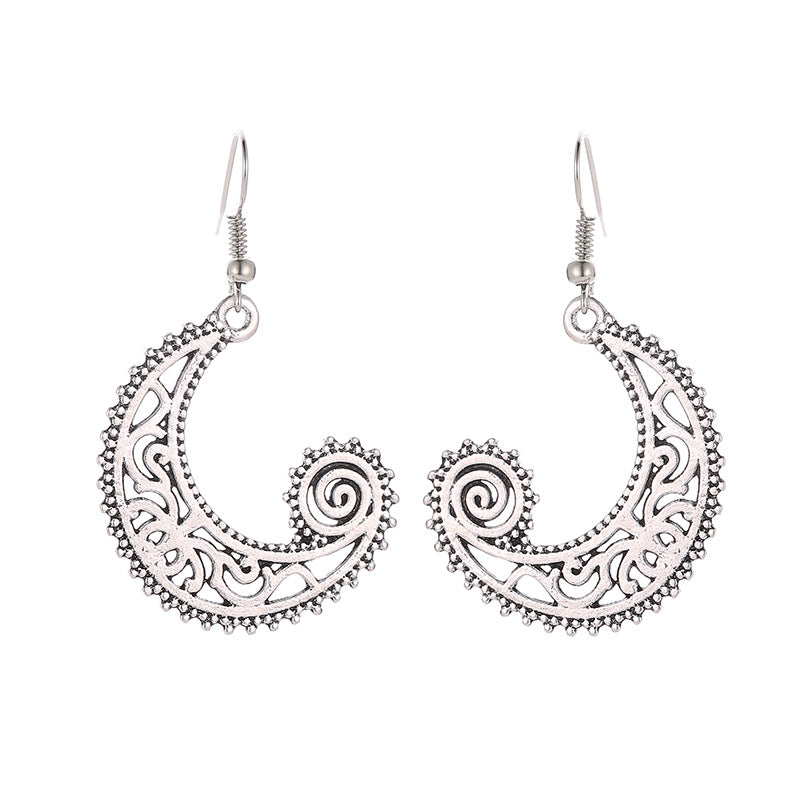 These retro carved moon hook earrings are designed in a bohemian style with wave spiral shape, adding a unique touch to your look.