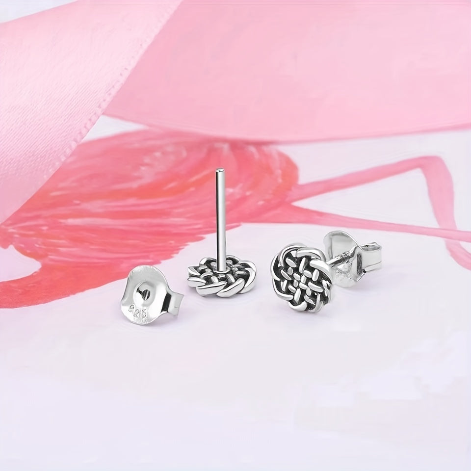 Add a touch of bohemian style to your outfit with these silvery knotted stud earrings. Made of sterling 925 silver, these earrings are perfect for daily wear and make a great gift for any occasion.
