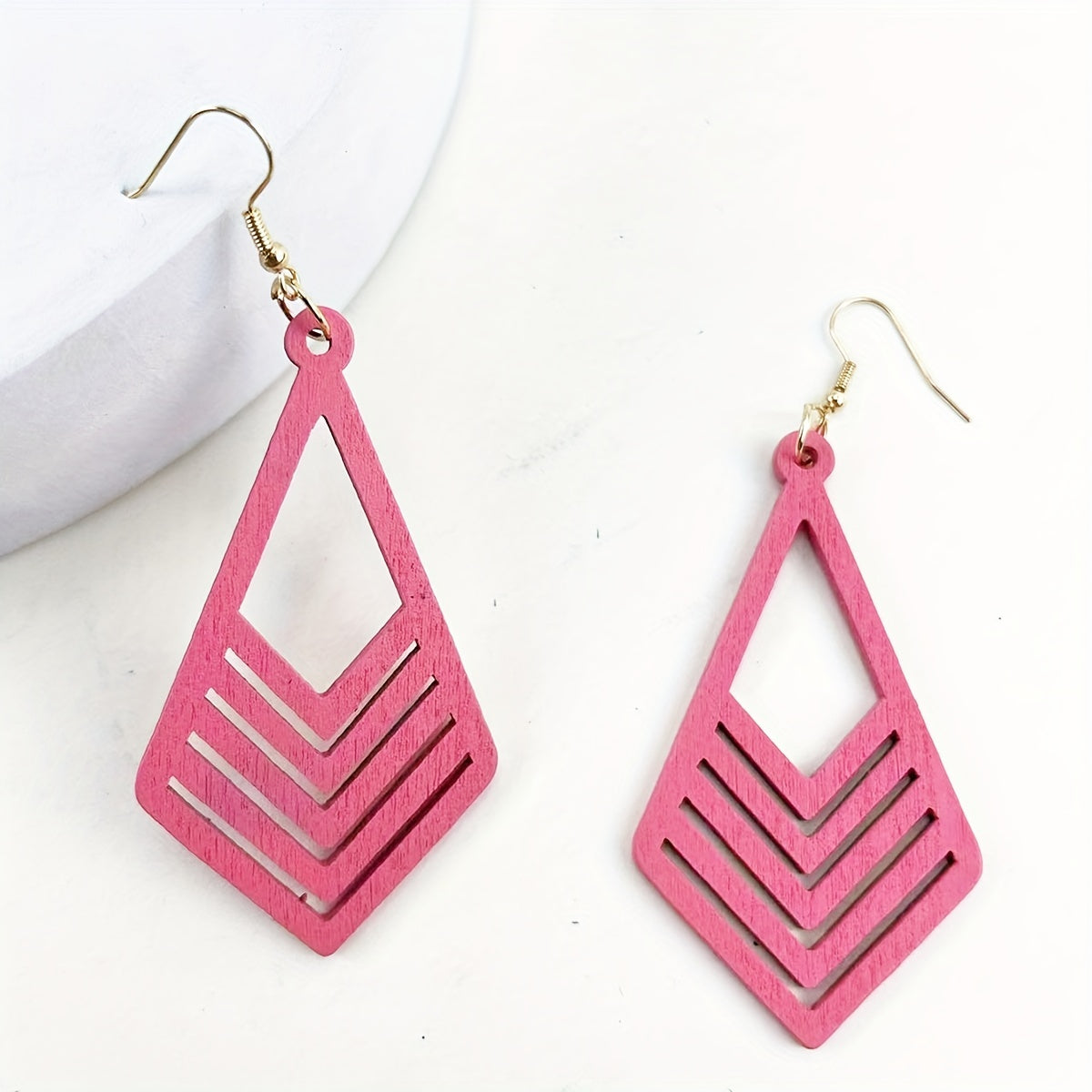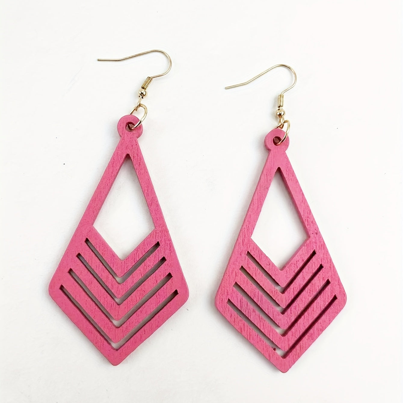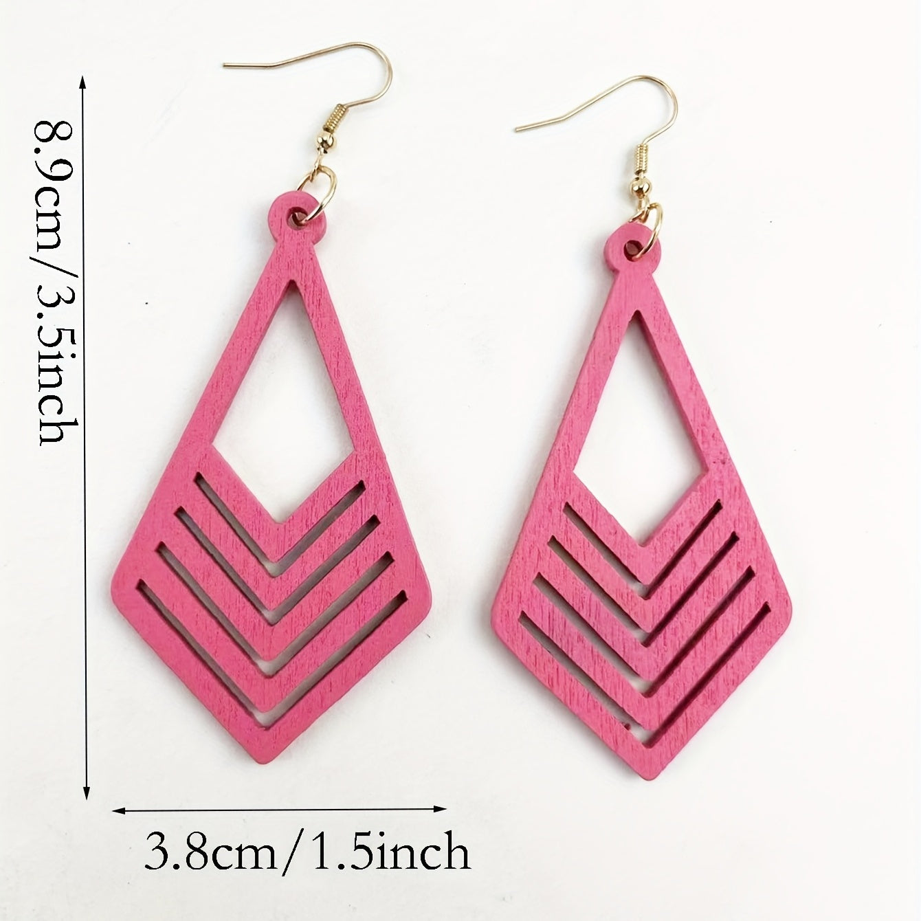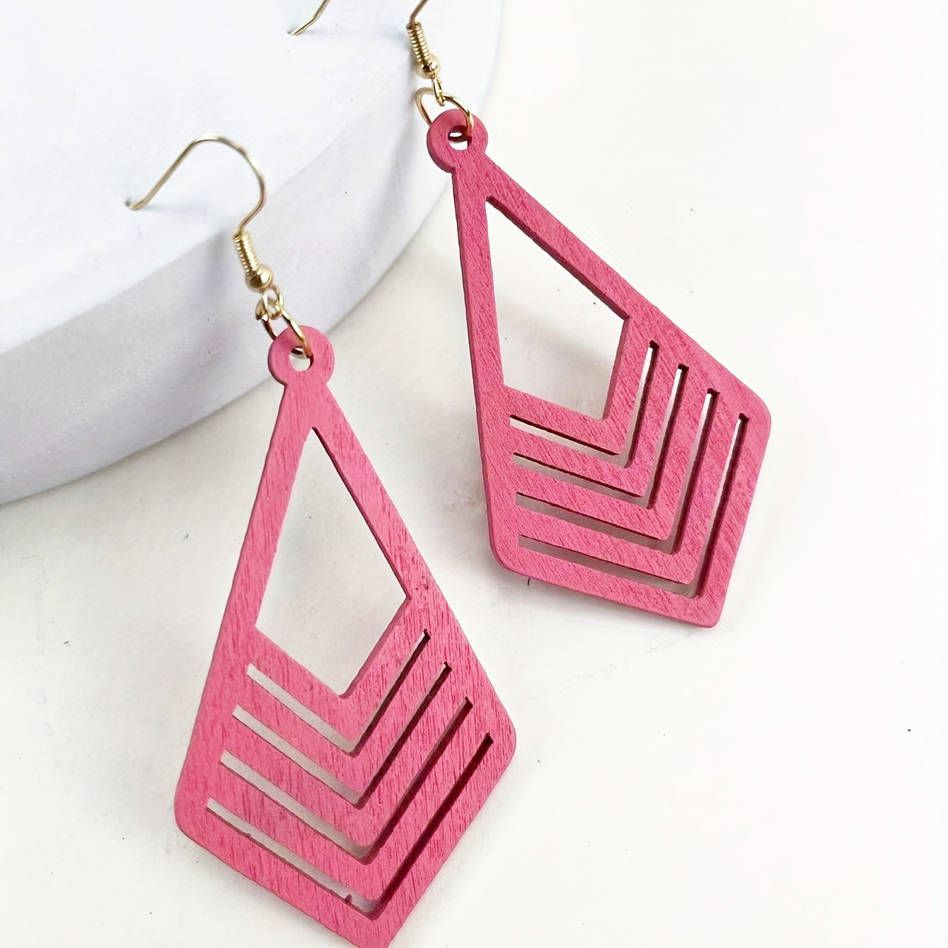 Add a touch of bohemian charm to your look with these pink hollow rhombus shape dangle earrings. Perfect gift for females.