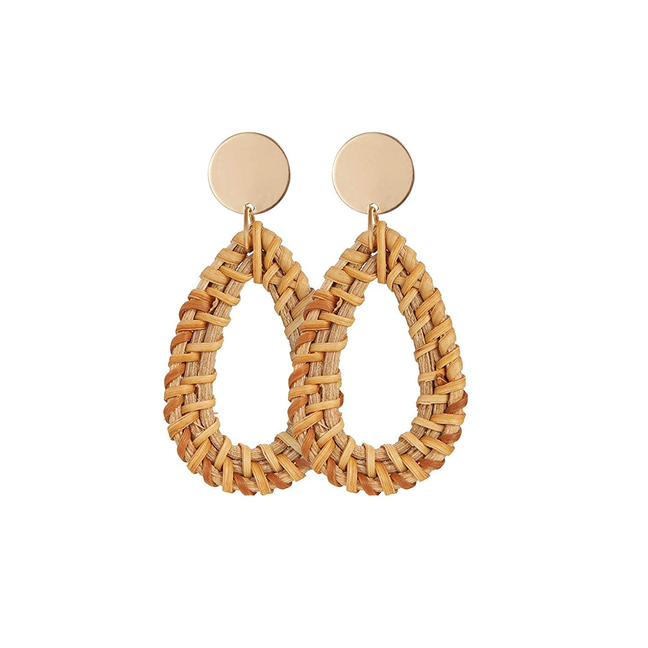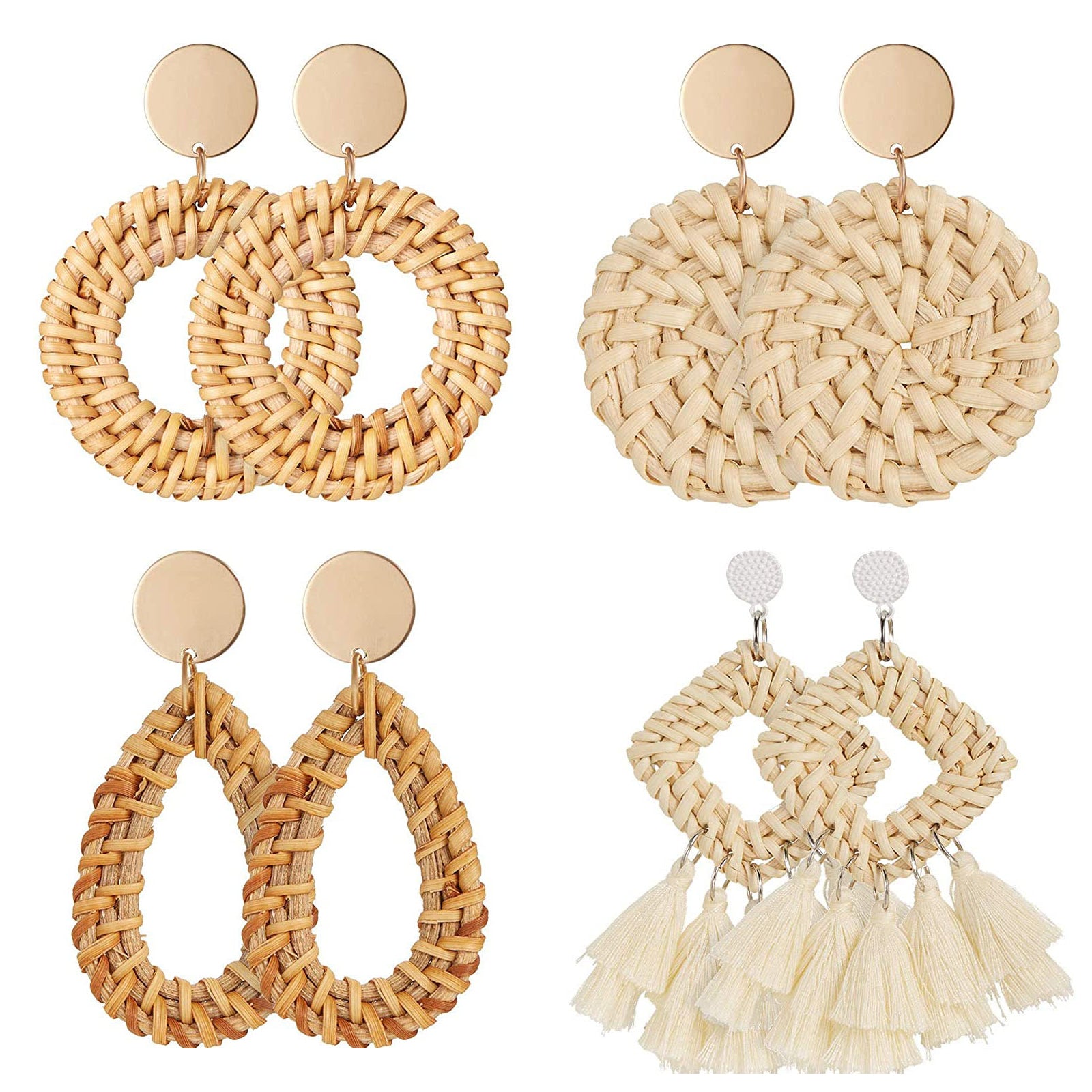 Exude bohemian charm with these rattan geometric pattern earrings featuring tassels. Perfect for adding a touch of woven style to your outfits.