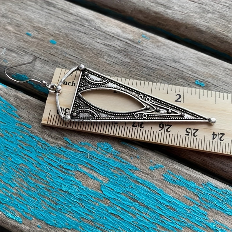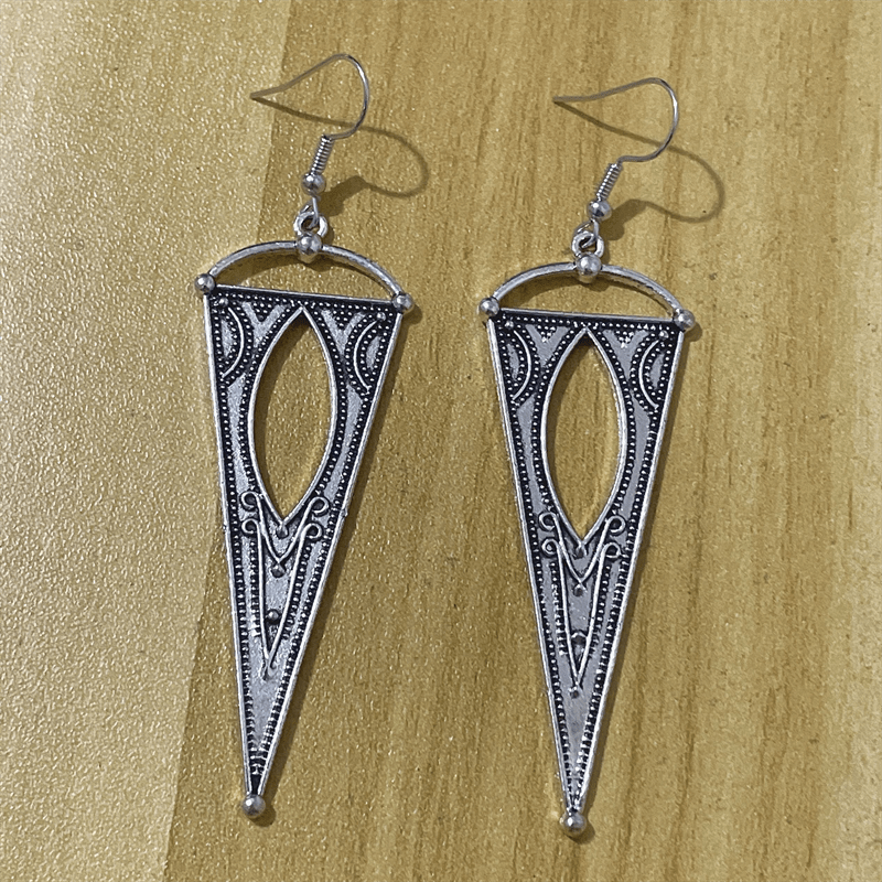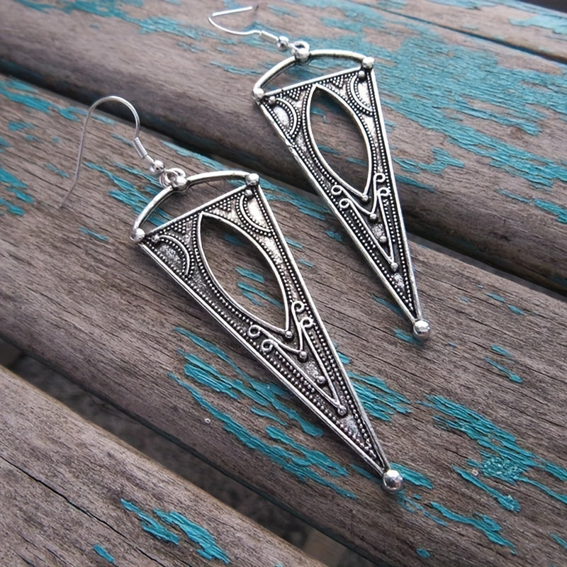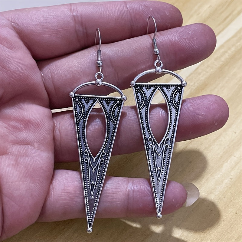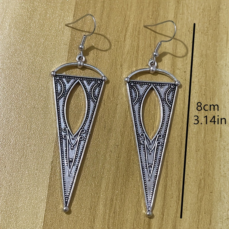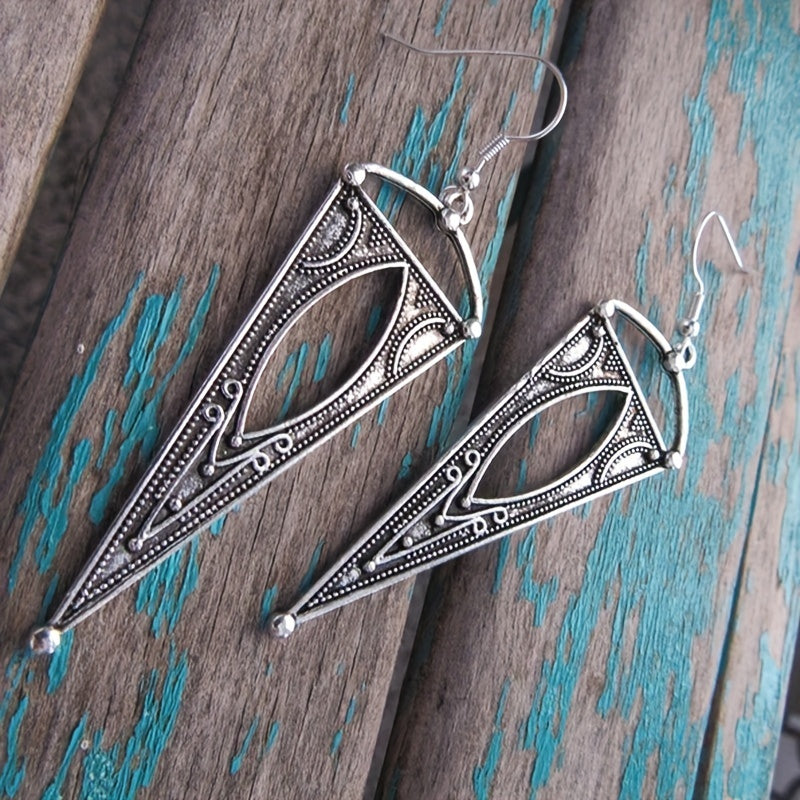 These vintage triangle hollow out earrings are a stylish accessory for men, perfect for parties or as a gift. The intricate carving adds a unique touch to any outfit.