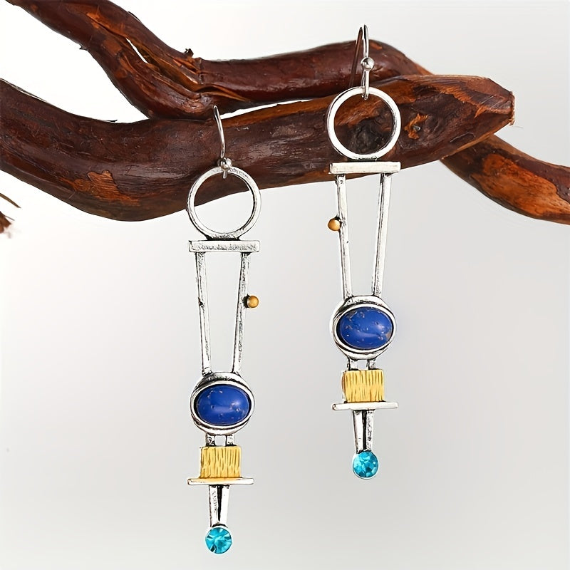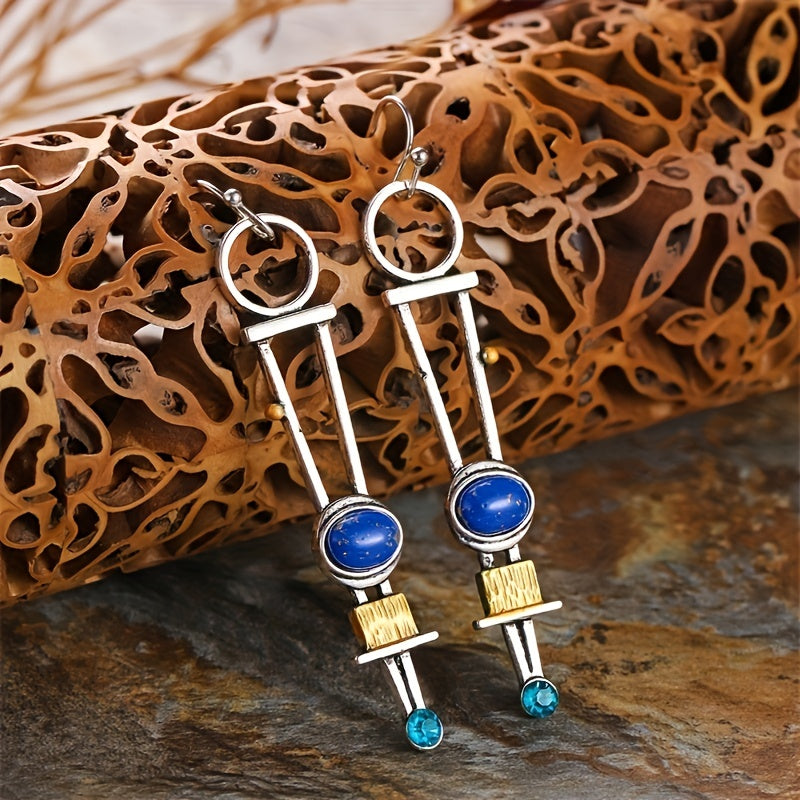 Elevate your style with these Bohemian vintage two-tone stone drop earrings. Perfect for adding a touch of elegance to any outfit.
