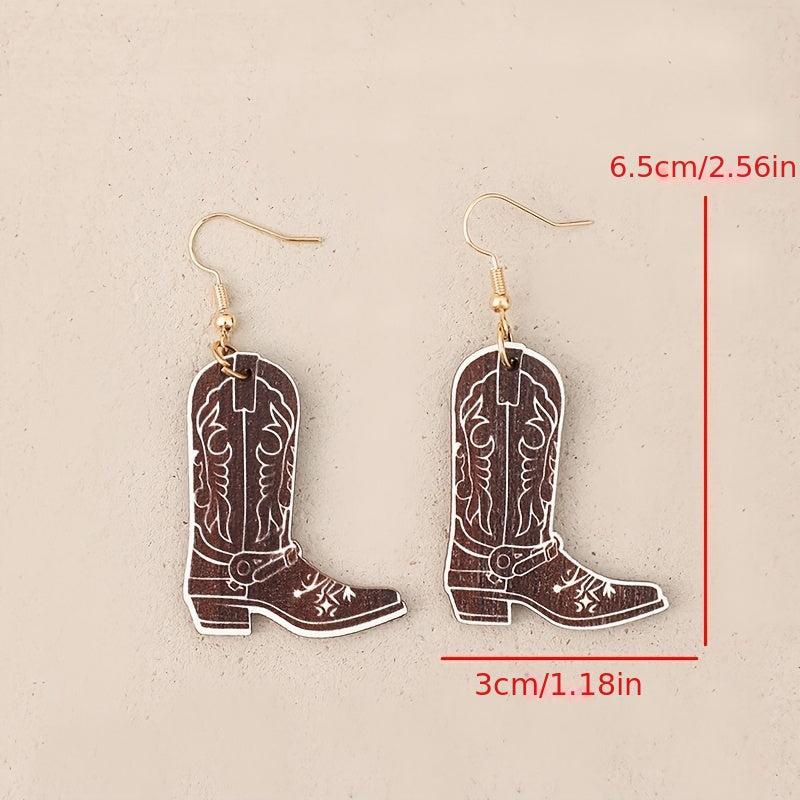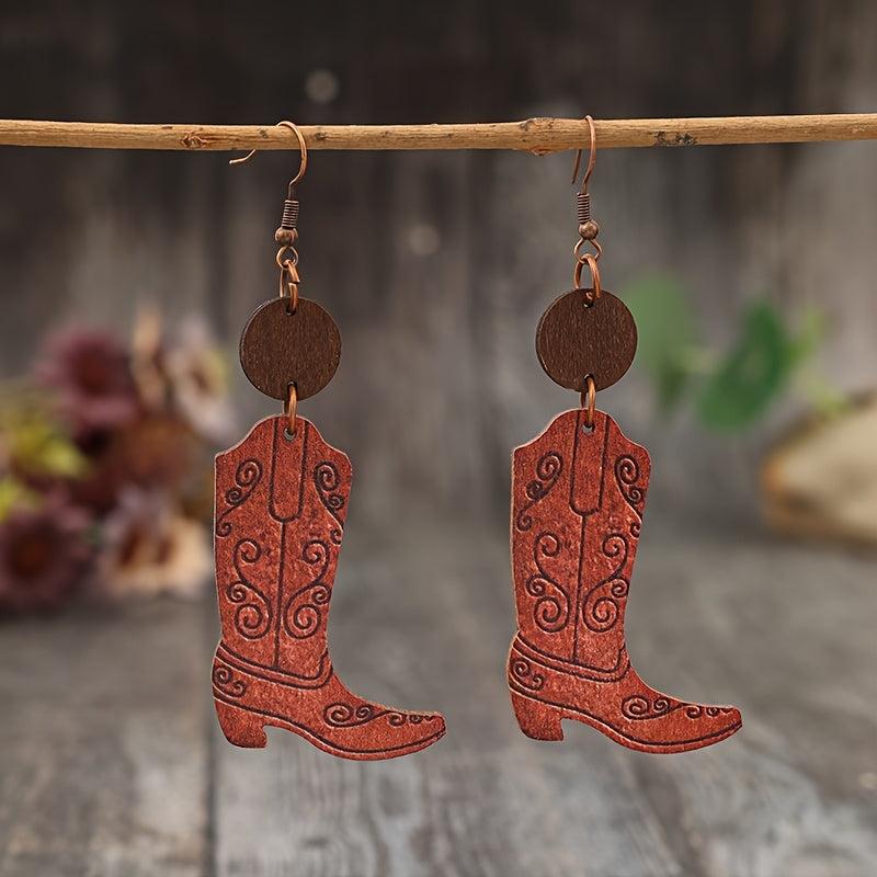Add a touch of vintage Bohemian style to your outfit with these unique wooden earrings. Featuring a pattern inspired by Western boots, these earrings are the perfect accessory for any occasion.