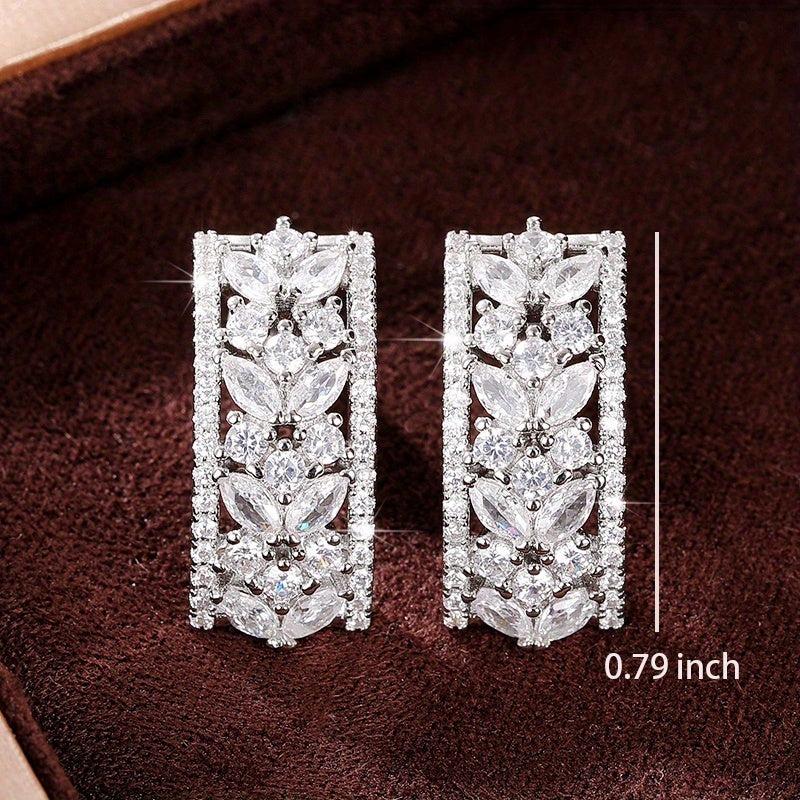 These Bohemian style drop earrings feature zircon stones set in 925 silver plating. Perfect for romantic engagements, weddings, parties, and as an anniversary gift.