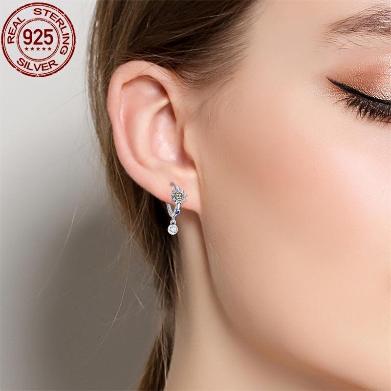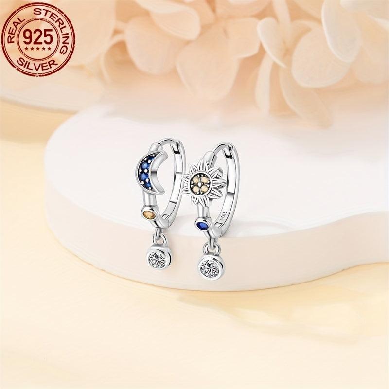 These celestial earrings feature synthetic moon and sun dangle design, crafted from high-quality 925 sterling silver. Ideal for wedding celebrations or as a Valentine's gift.