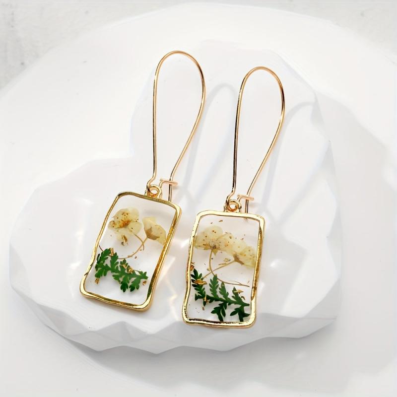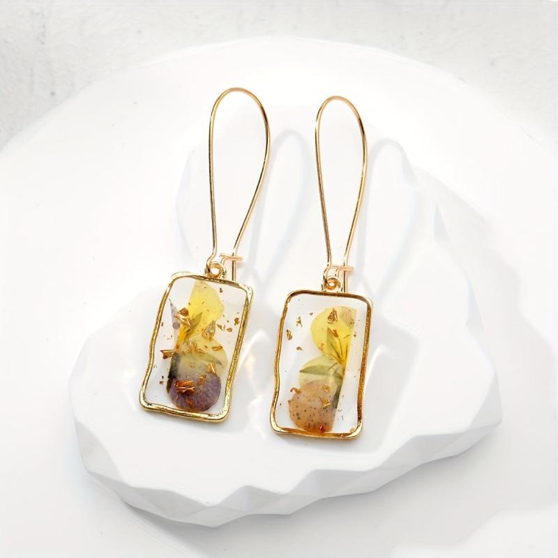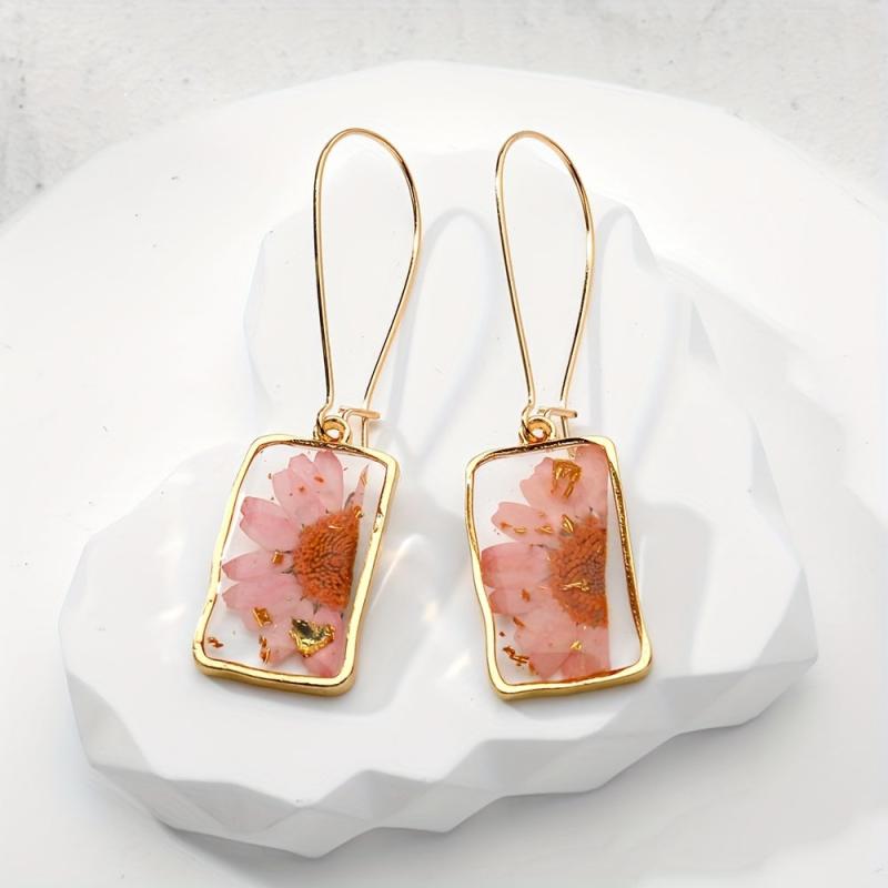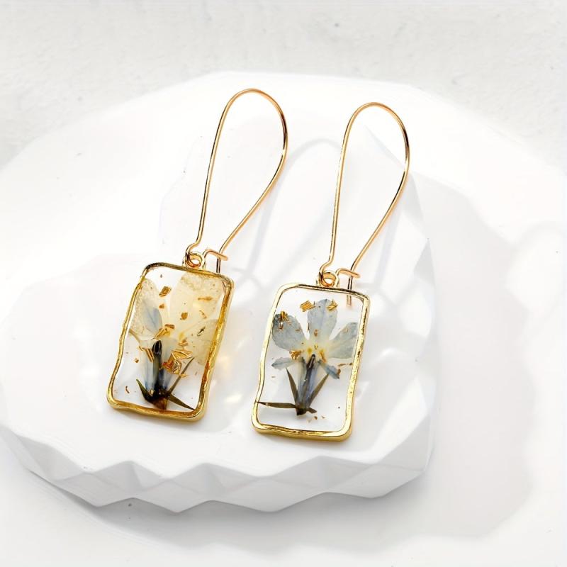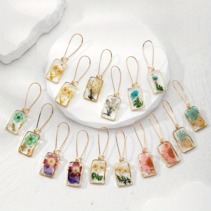 Add a touch of bohemian charm to your style with these unique earrings and keychain featuring colorful dried flowers in resin. Perfect for daily wear and a great gift idea.
