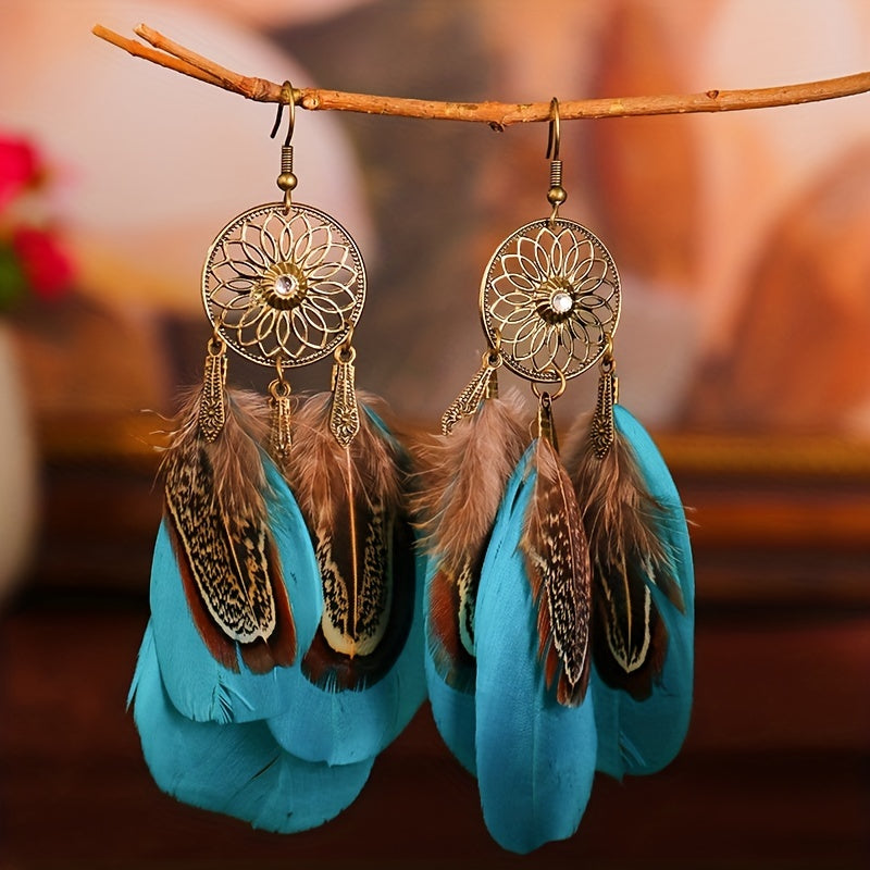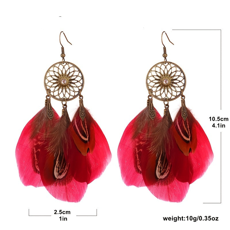 Add a touch of bohemian flair to your outfit with these stylish feather tassel earrings. Perfect accessory for a vacation or summer look.